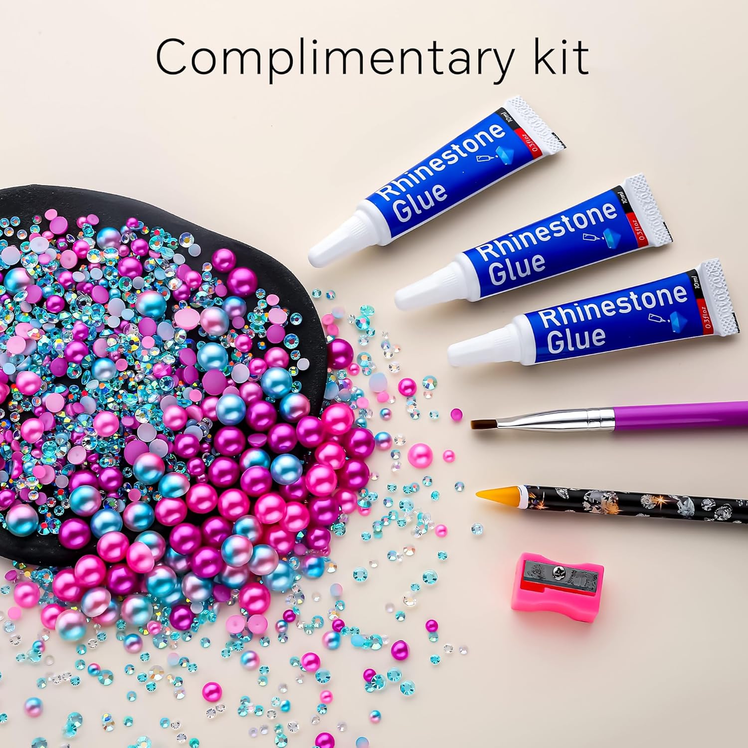 - What You Will Receive: 60g(30g*2)mixed size flat back pearls and rhinestones. 3*Rhinestone Glue. 1* wax pencil for rhinestones. 1*Pencil sharpener(color random). The mix half round pearls and rhinestones can make more beautiful handicrafts for your friends, parents, yourselfs on any festivals.If you need a mixed size pack of pearl rhinestones