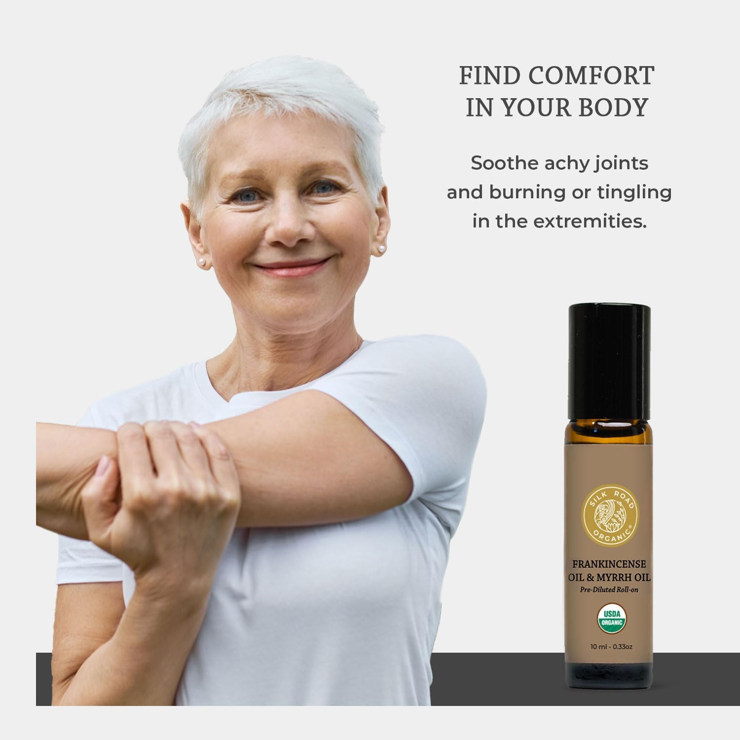 Silk Road Organic Frankincense Oil & Myrrh Essential Oil Roll On, 100% Pure USDA Certified Aromatherapy for Body Aches, Stiffness & Tingling, Stress Relief, & Skin - 10 ml Roller