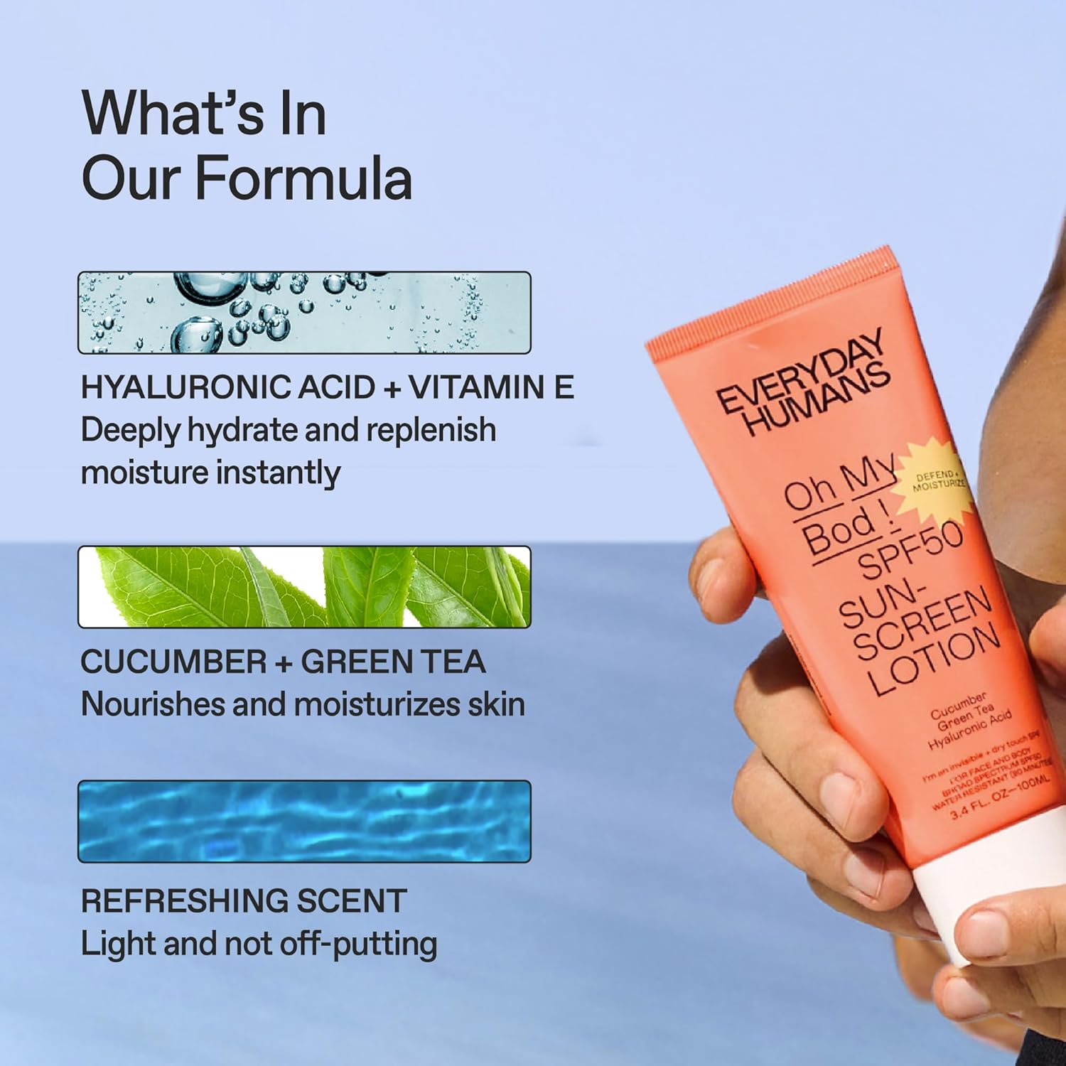 Everyday Humans Oh My Bod SPF50 Face & Body Sunscreen Lotion 3.4 oz - Pack of 2
