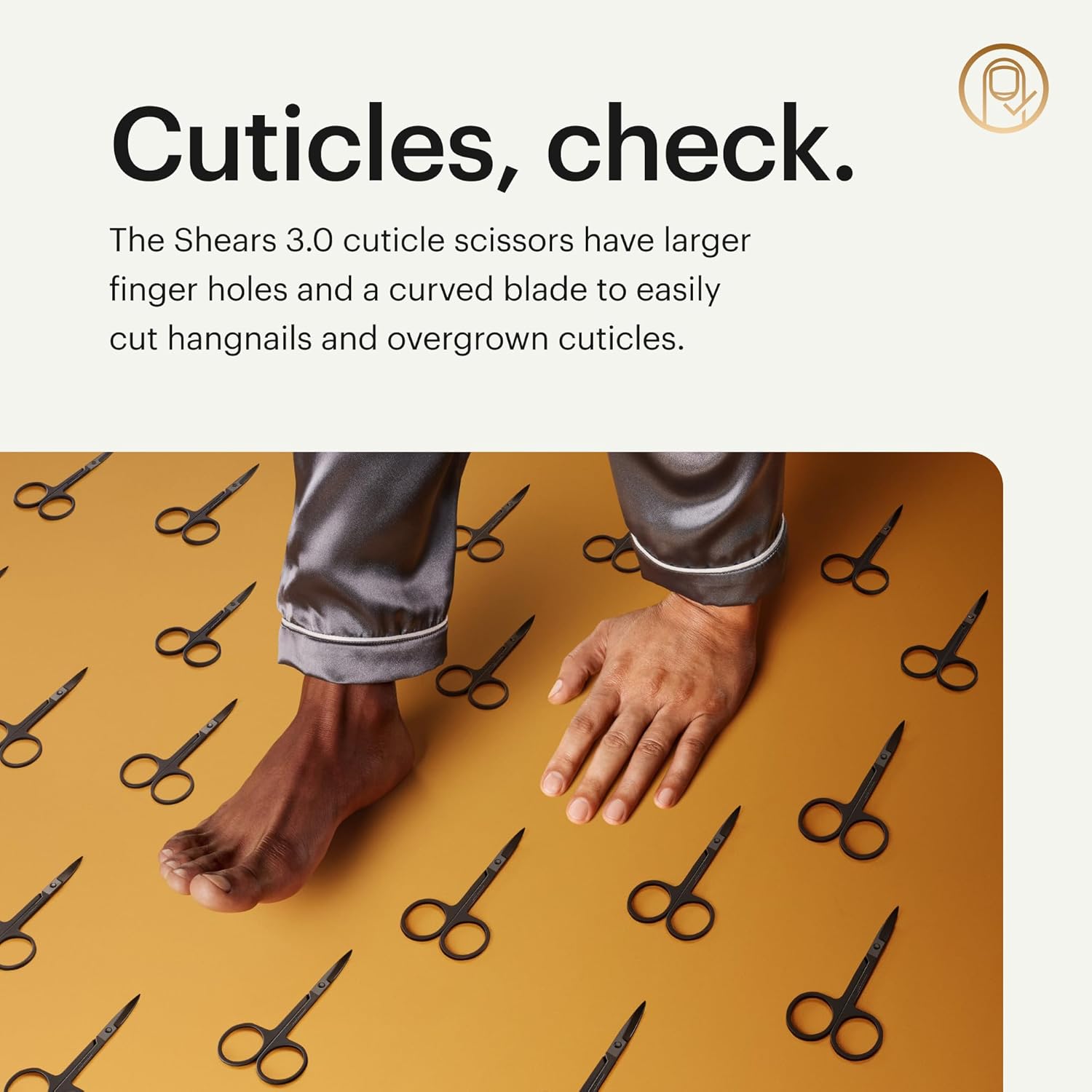 - CUTICLES, CHECK: The Shears 3.0 cuticle scissors have larger finger holes and a curved blade to easily cut hangnails and overgrown cuticles.