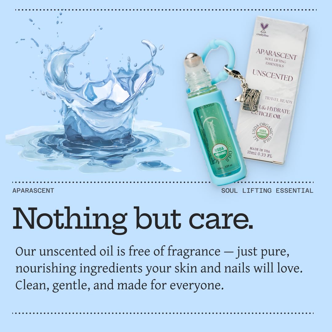 - NATURAL AROMATHERAPY SCENT: Unscented and pure - designed to care without competing with your other perfumes. Infused with real essential oils, this oil doubles as a soft, subtle natural perfume. Swipe it on your wrists, neck, or collarbone and let the calming aroma linger.