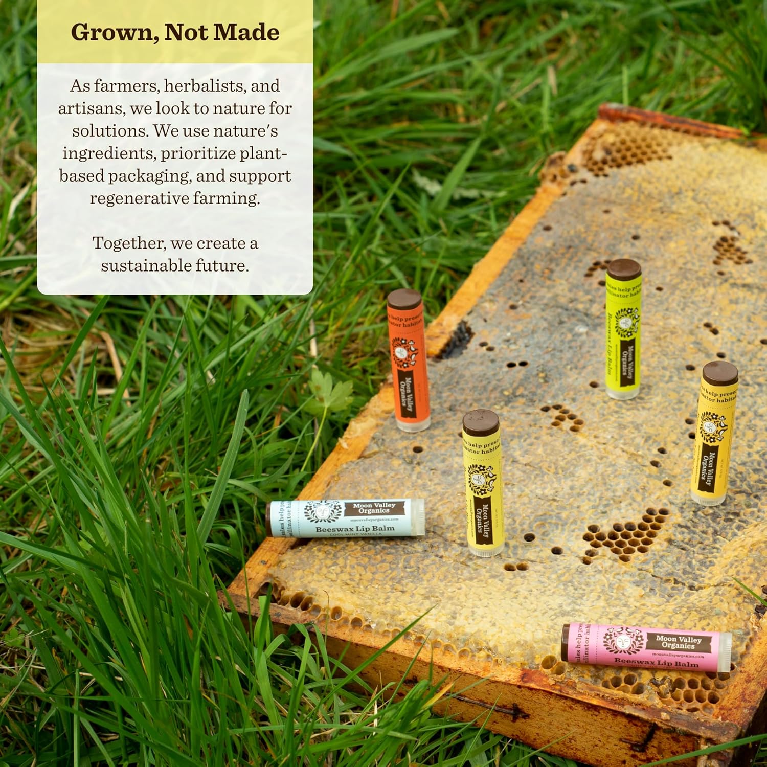 Moon Valley Organics Beeswax Lip Balm for Moisturizing Lips and Cuticles (Honey | Mint Vanilla | Vanilla | Blackberry, 4 Count (Pack of 1))