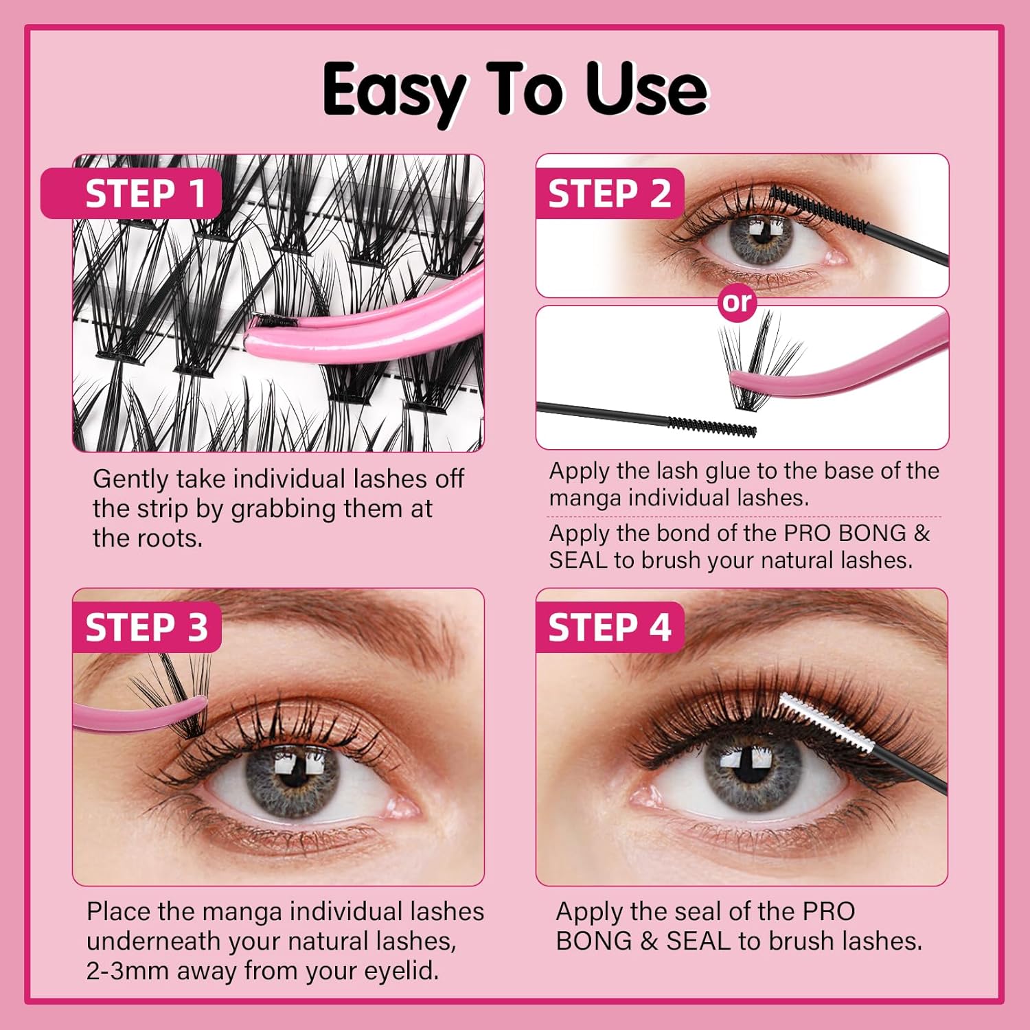 - Natural Like Your Own Lashes: Two different styles of C-curl and D-curl lash clusters and a variety of lash lengths can help you easily achieve a natural or dramatic look. In addition, they can be removed cleanly by the adhesive remover without any worries at all.