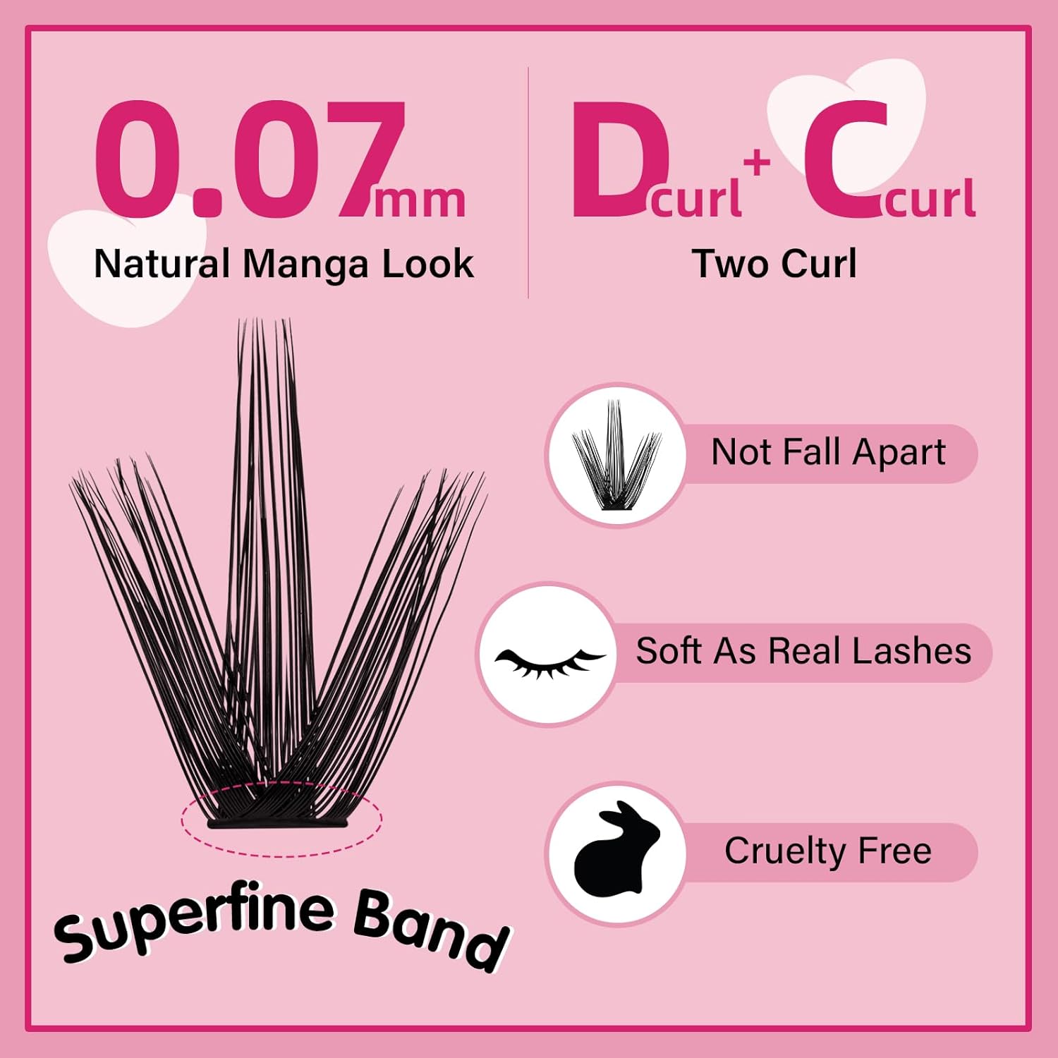 • Natural Like Your Own Lashes: Two different styles of C-curl and D-curl lash clusters and a variety of lash lengths can help you easily achieve a natural or dramatic look. In addition, they can be removed cleanly by the adhesive remover without any worries at all.