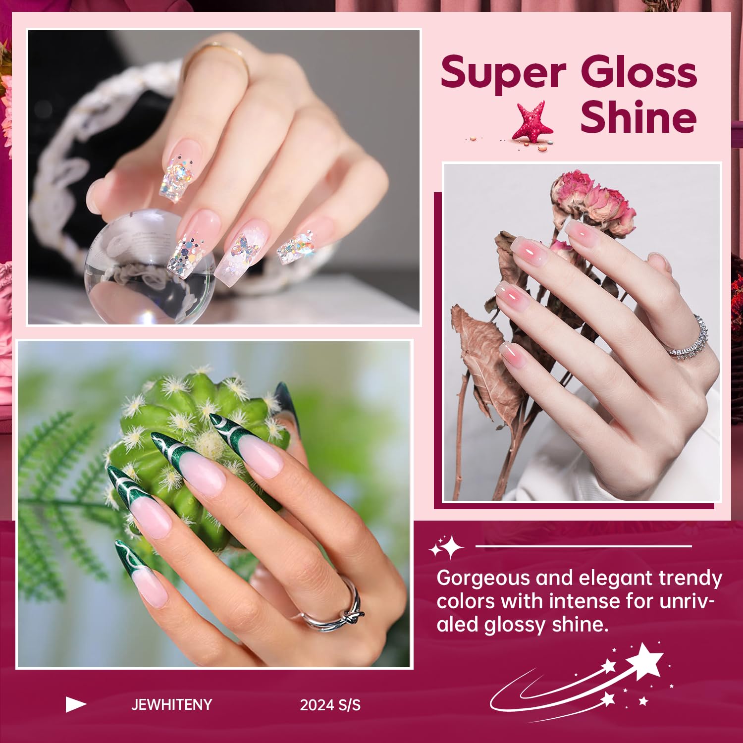 JEWHITENY 28 Colors Poly Nail Extension Gel Kit for Starter at Home Poly Nail Gel All-in-one Kit with Nail Lamp French Trendy Manicure DIY Kit