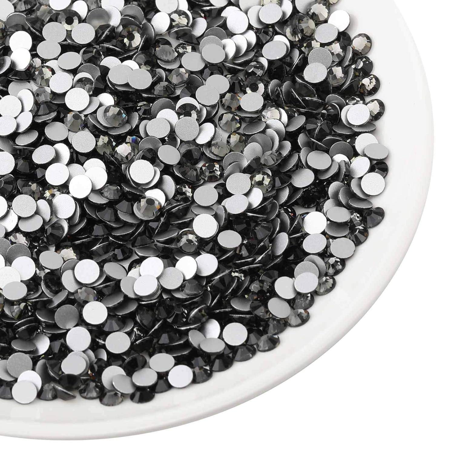 Beadsland 288pcs Flat Back Crystal Rhinestones Round Gems for Nail Art and Craft Glue Fix,Black Diamond,SS34,7.1-7.3mm