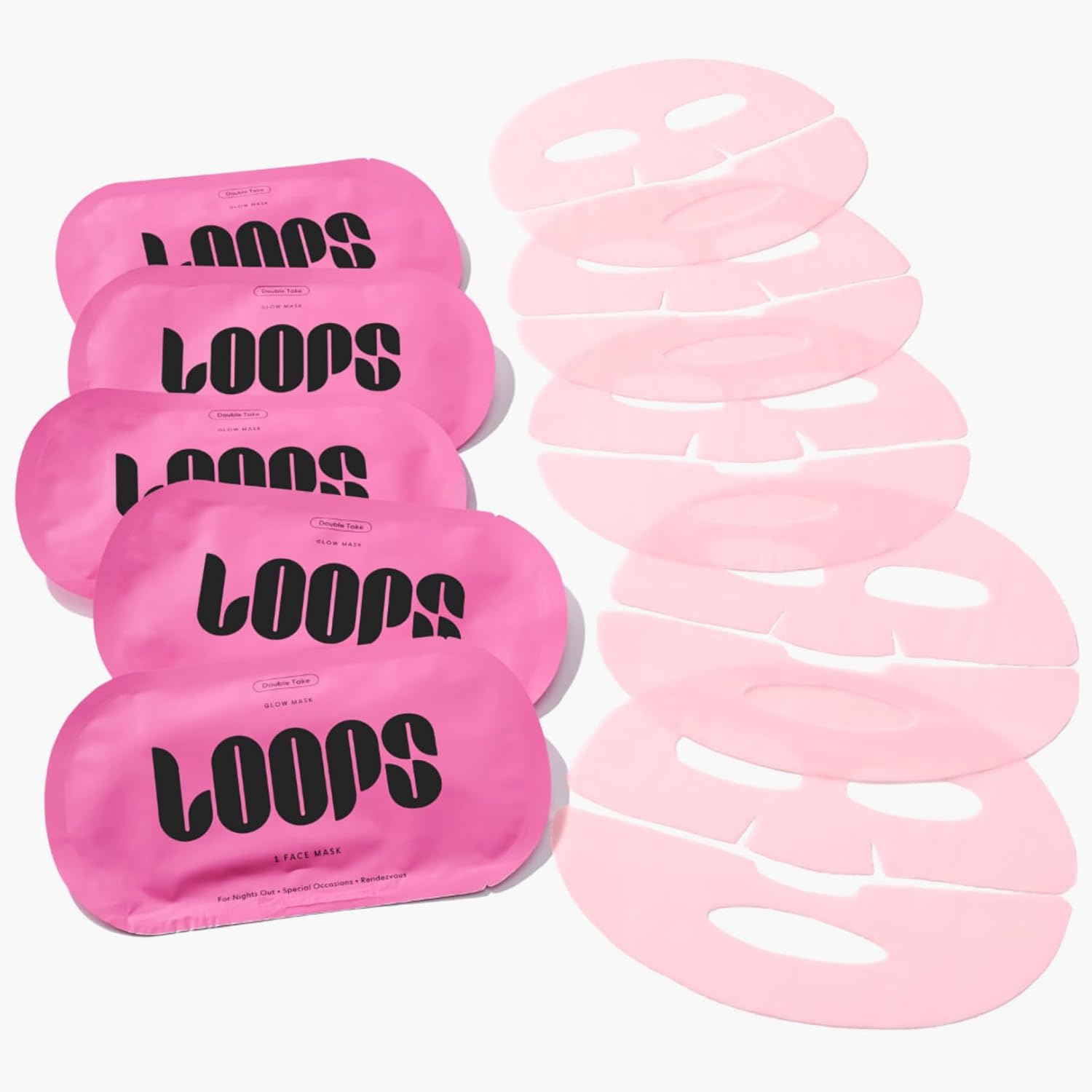 LOOPS DOUBLE TAKE - Glow Hydrogel Korean Face Mask - Calms & Soothes Skin’s Surface - Helps Refine Pores & Brighten Face, Glowing and Luminous - For All Skin Types - 5 pc