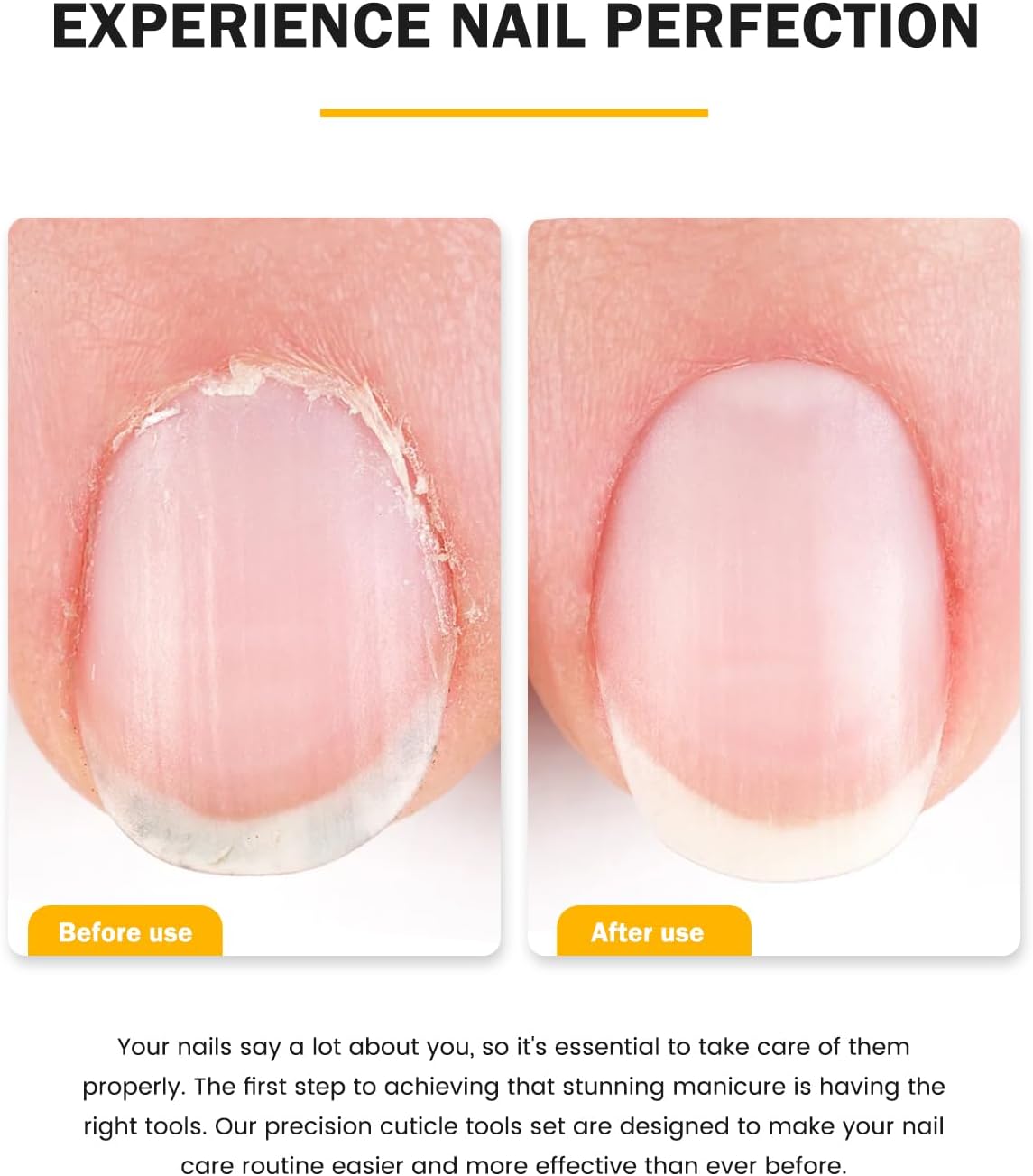 - COMPLETE CUTICLE TOOLS - Take your nail game to the next level with this comprehensive cuticle trimmer set. It includes cuticle cutters, nail cuticle pusher, and cuticle scraper. Whether you're a nail art pro, a learner, or simply looking for a DIY solution, this multi-purpose manicure set is perfect for nail enthusiasts everywhere.
