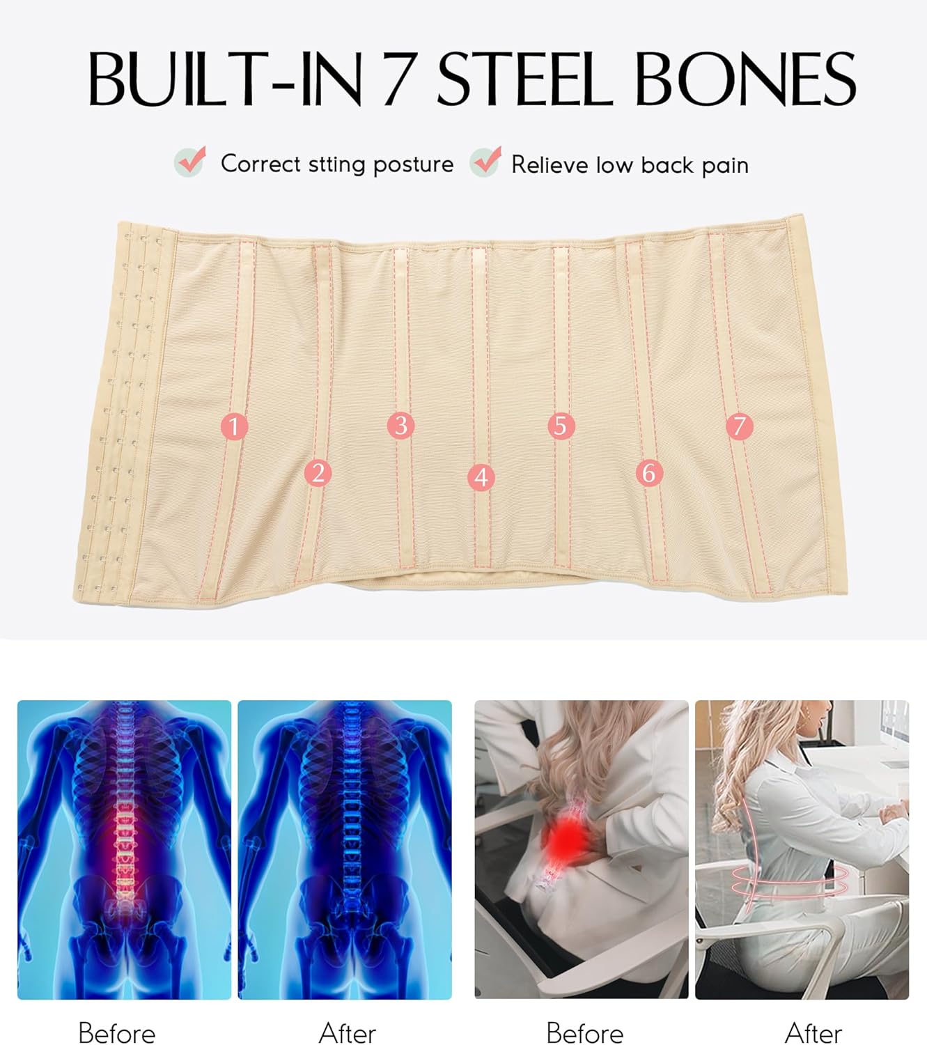 - STRONG SUPPORT LOW BACK SHAPEWEAR: The shapewear for women tummy control equips with 7 spiral steel bones fitted to curve naturally, encouraging an upright posture all time without rolling up and down, no matter you're doing housework, working, or exercising. Back fat shapewear provides all-around support and pressure to the waist area, control the flabby back, evenly distribute pressure along the back to relief back pain and improve hunchback, so as to achieve a more elegant appearance.
