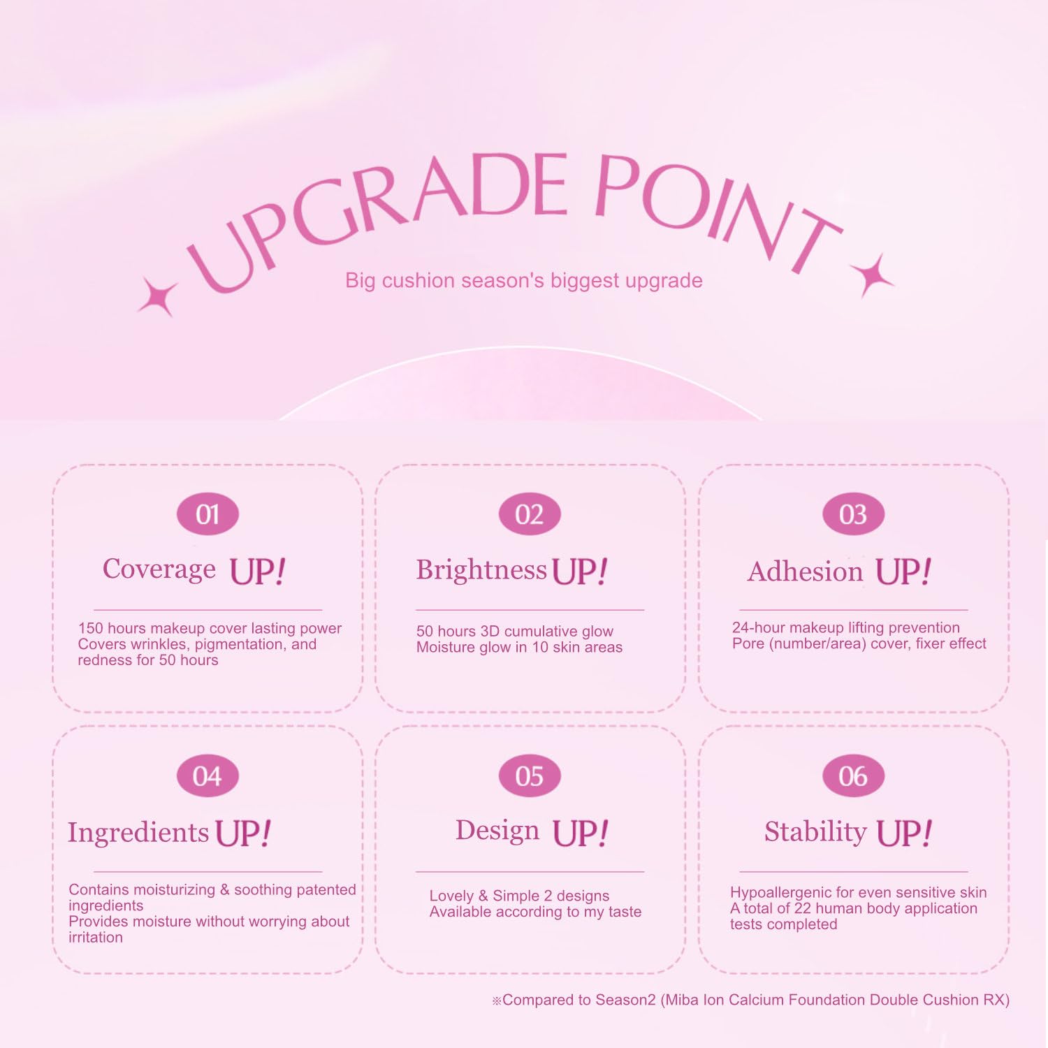 MIBA Ion Calcium Foundation Double Cushion Glow 25 g / 0.88 oz Big Cushion SEASON 3. Long Lasting Cover Effect. Moisture glow. Skin tightening relief. Smooth adhesion. (Lovely #21 Rosy Ivory)