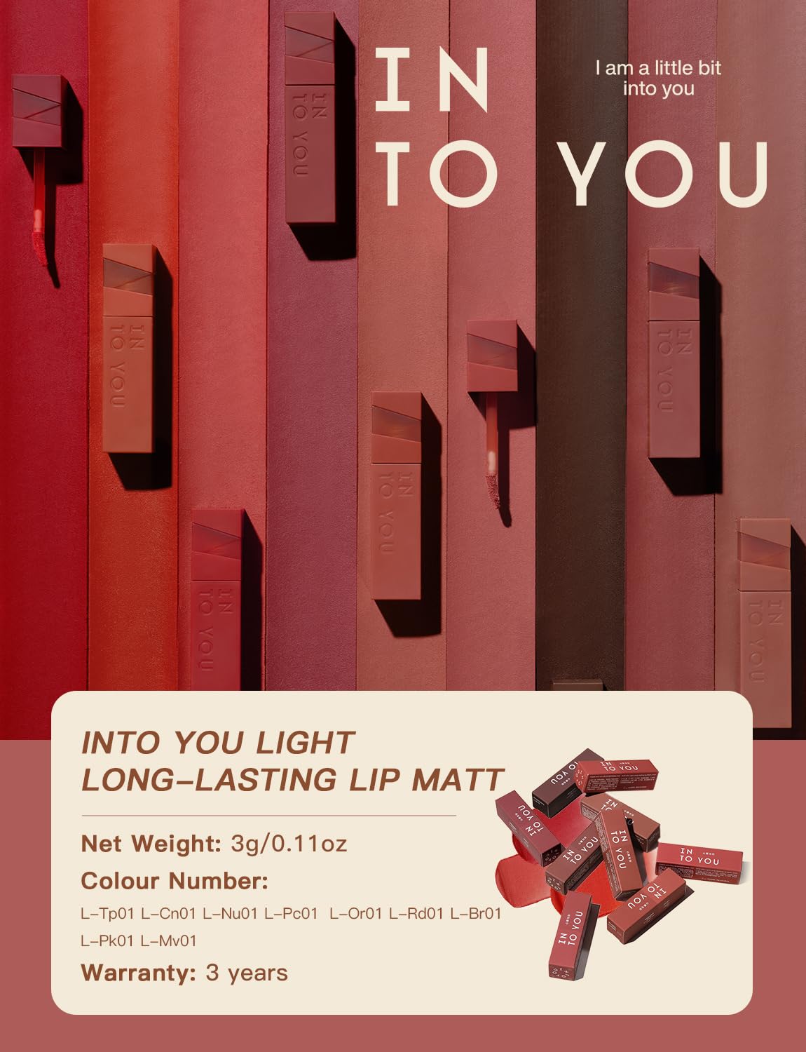 INTO YOU Matte Velvet Lip Stain Lip Mud Long Lasting Waterproof Lip Gloss Makeup Moisturizing Lipstick for Women(L-Mv01)