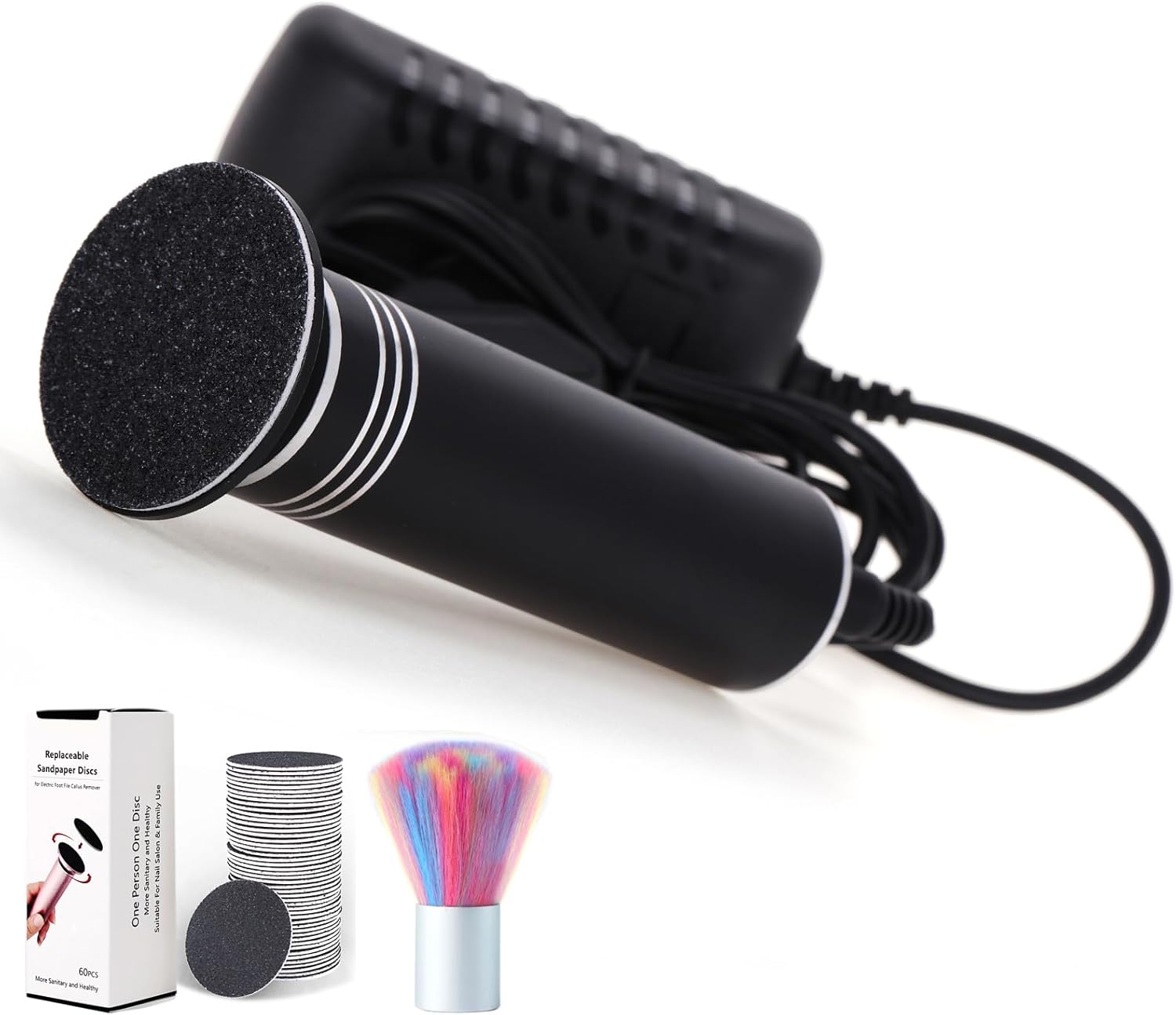 - GENEROUS SUPPLY OF SANDPAPER DISCS: With 60 sandpaper discs included, you won't have to worry about running out anytime soon, it's great value for the price. I.B.N Electric foot file is efficient, adjustable, and easy to use, making it a top-notch tool for anyone looking to maintain soft and callus-free feet.