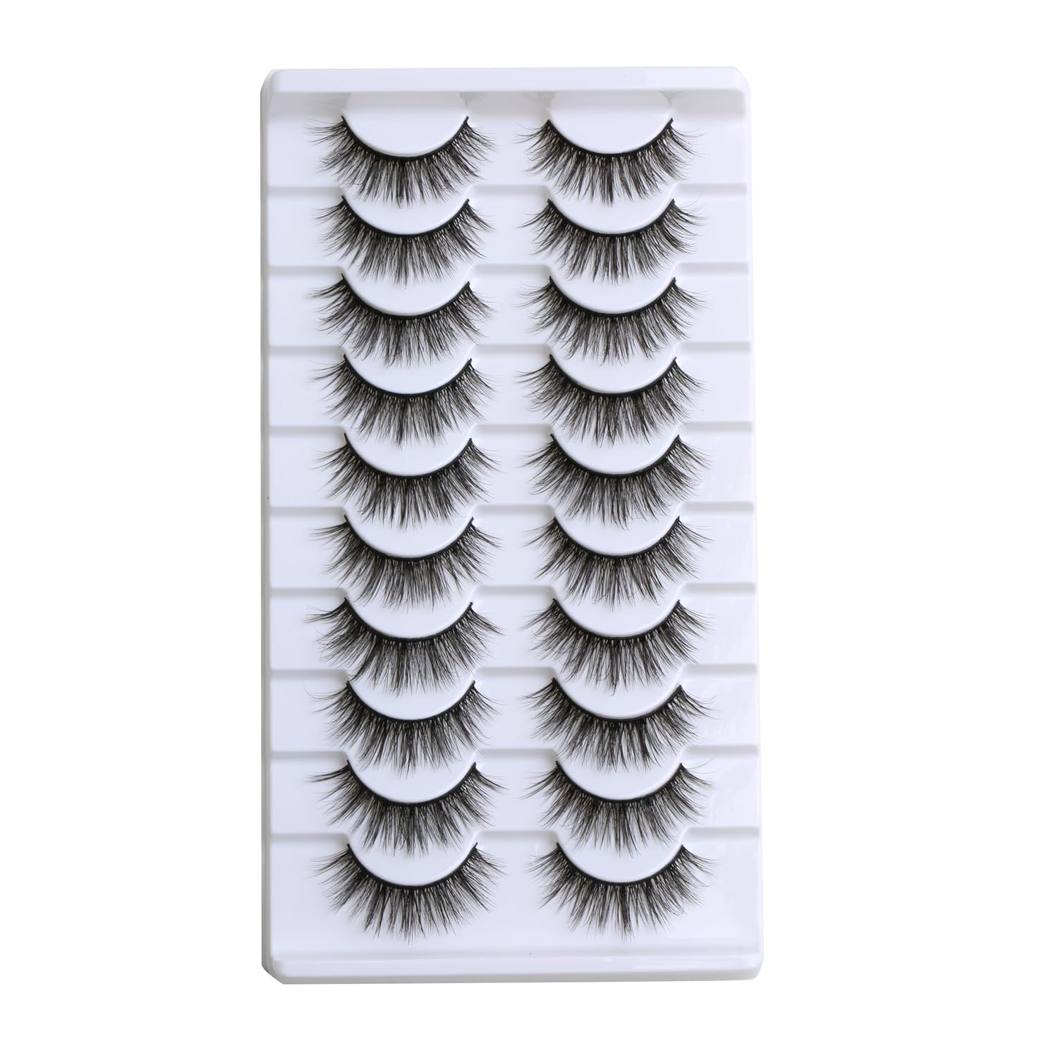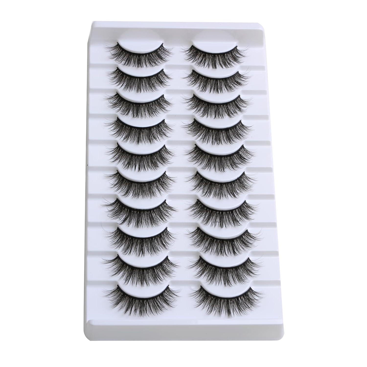 SUNWELL False Eyelashes 14mm Mink Lashes Natural Look 3D Faux Mink Lashes Manga Lashes Strips Soft Wispy Luxury Volume Fake Lashes 10 Pairs Pack