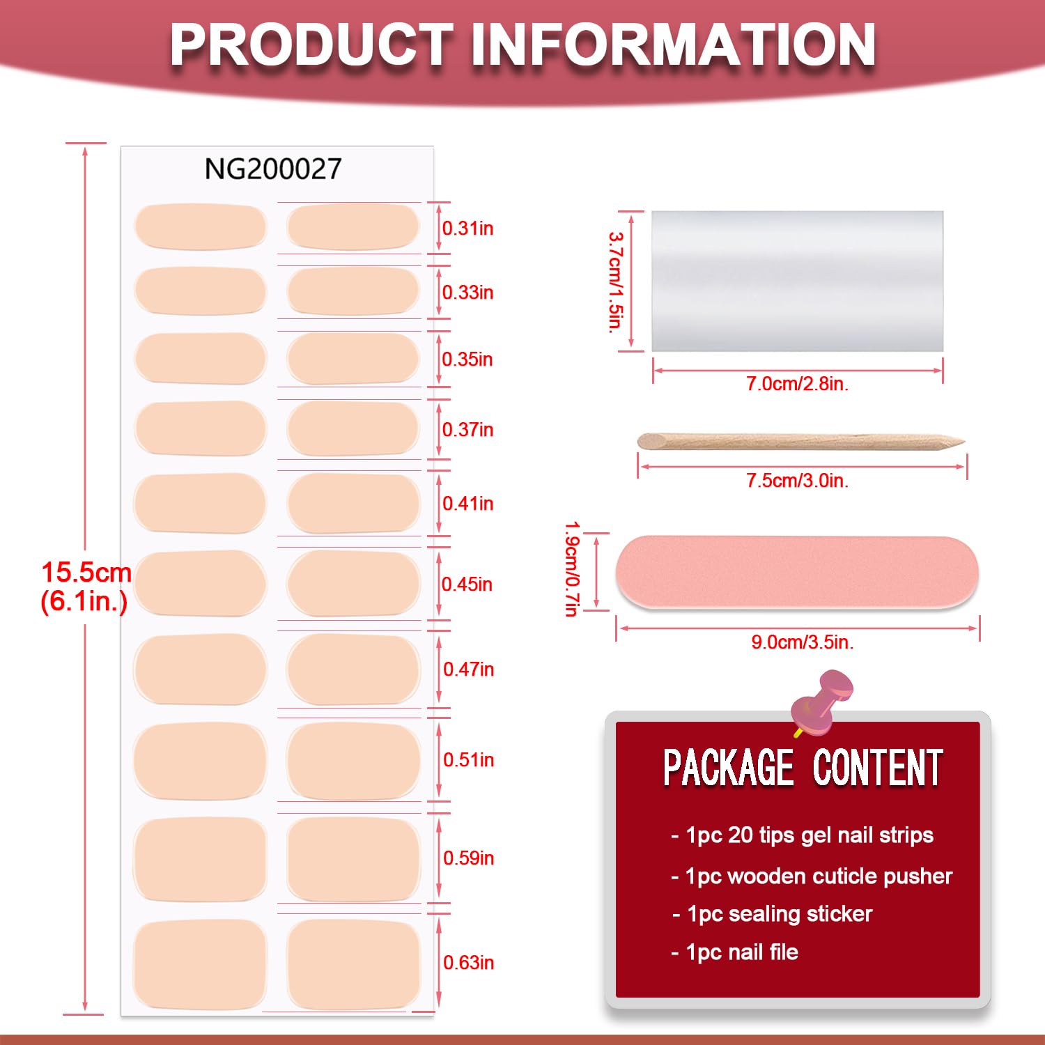 - [ 20 GORGEOUSLY THICK NAIL POLISH STRIPS ] - Package Content 20 Tips Bisque Semi cured nail polish stickers with 10 different sizes to ensure that fit for the most of nails, if you are good at use sissors, you can also cut the tips too big to be the size fitted, or share this good products with family or friends.