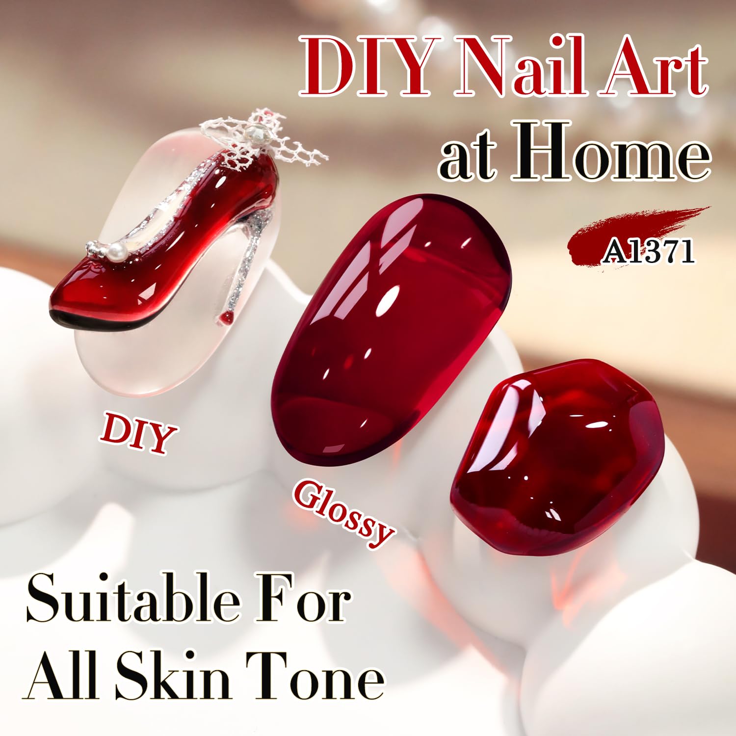 Double Rhythm 0.5Oz Jelly Gel Polish Translucent Sheer Neutral Natural Light Milky Same Color Same Bottle 15ML Burgundy Gel DIY at Home (Blood Red-A1371)