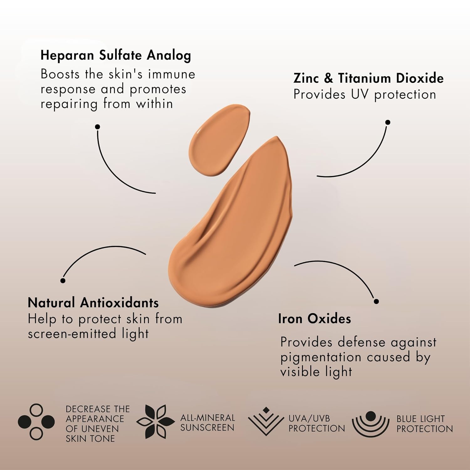 - Light, breathable formula designed to blend into the skin and provide even coverage.