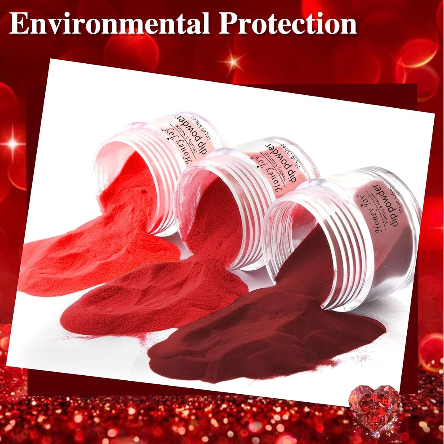 Dip Powder Set, Honey Joy 6 Colors Classic Red Collection Glitter Dipping Powder Set Nail Art Manicure DIY Salon Home Gifts for Women, No Need Nail Lamp Cured, DP-T