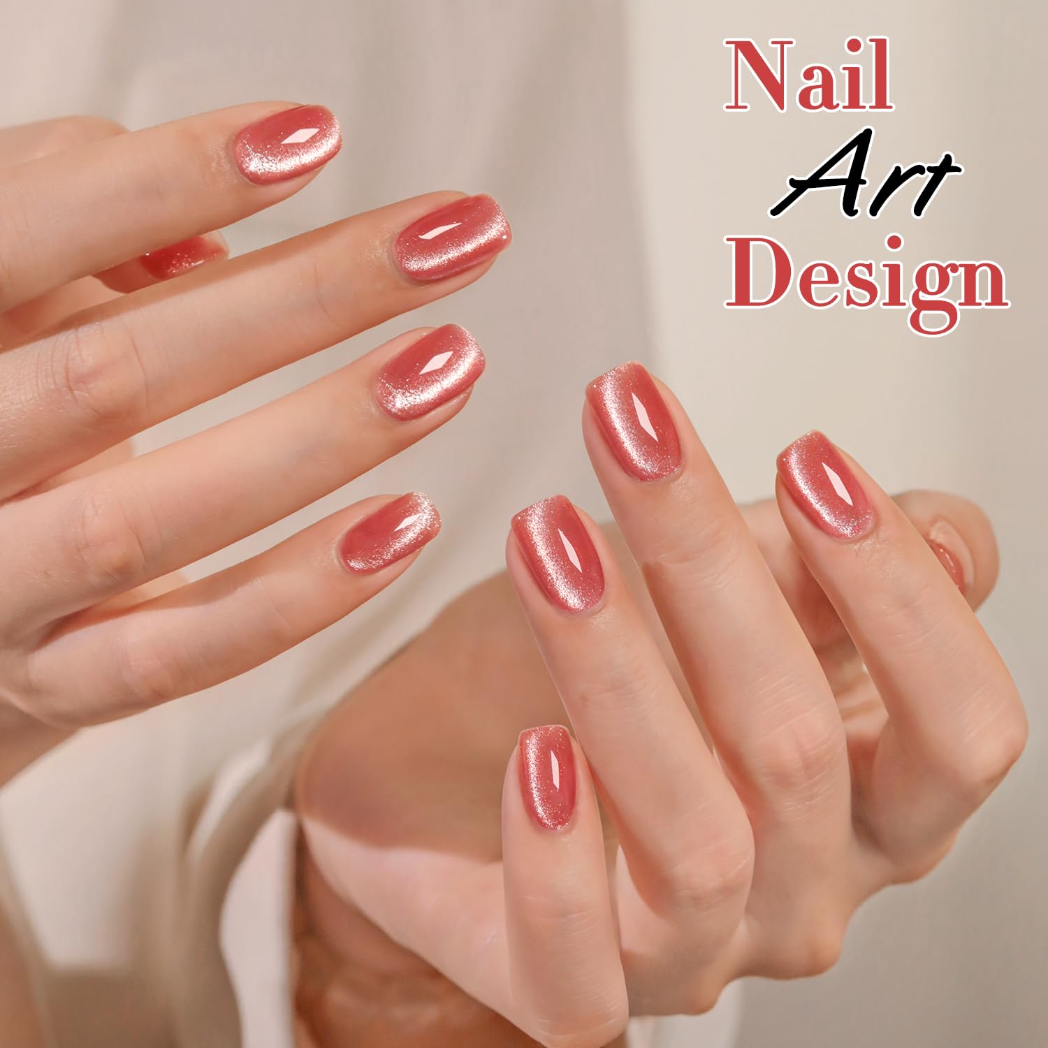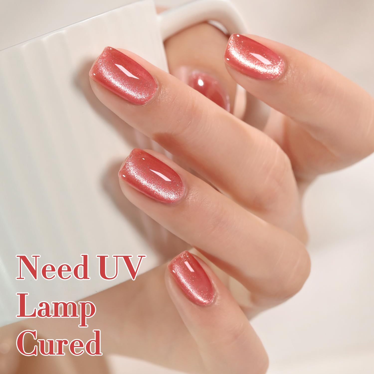 Double Rhythm Cat Eye Gel Polish with Magnet 15ML Holographic Glitter Shimmer Translucent Jelly Color 0.5 OZ Magnetic Gel Polish Salon DIY at Home (Rose Peach-MC1059)