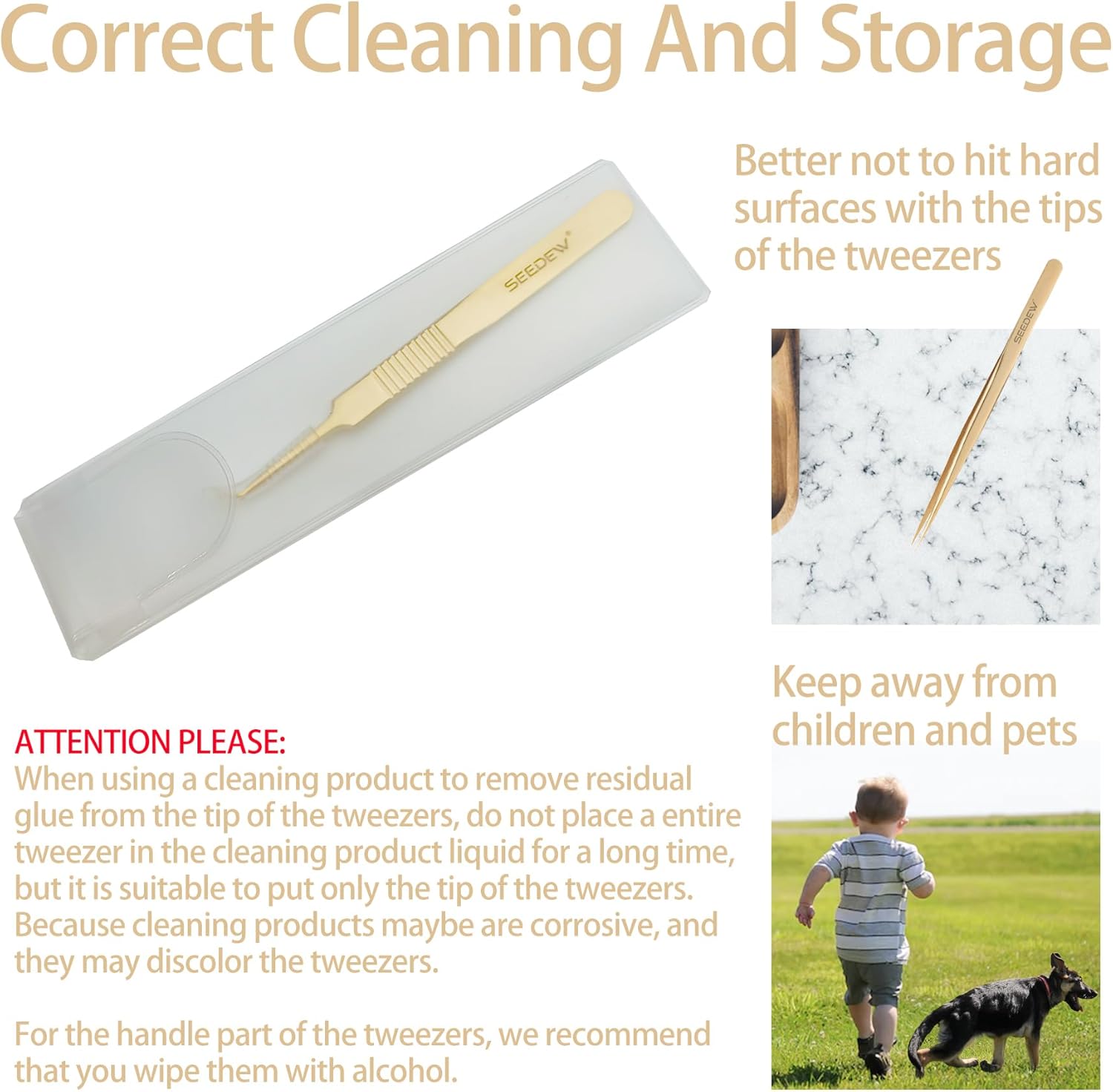 - â¤ď¸ăComfortable And CleanăSEEDEW tweezers are ergonomically designed, and the comfortable handle is suitable for long-time holding and using. Eyelash tweezers can help you reduce contact with your clients' skin and eyes, cleaner and safer.