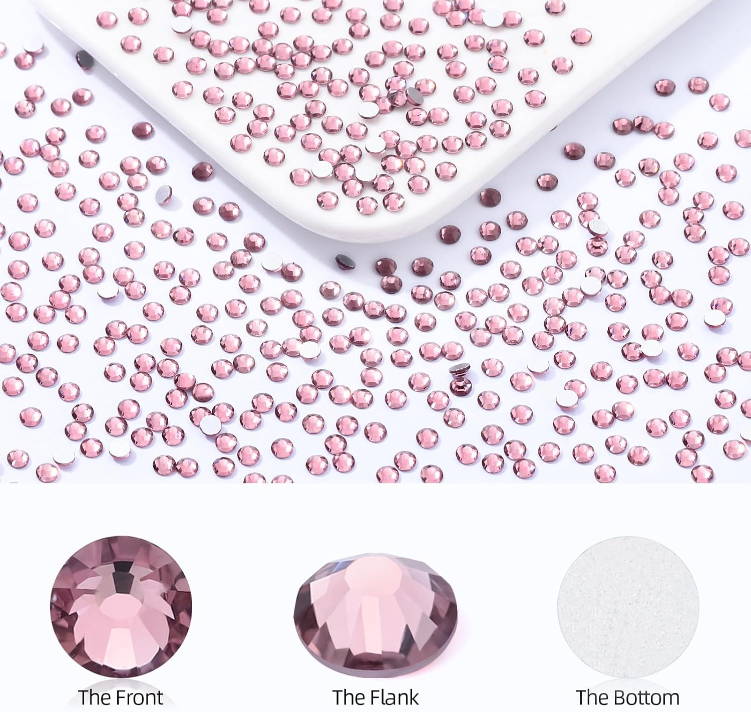 Light Amethyst Flatback Rhinestones, Glass Rhinestones for Nail Art and Craft, Glue Fix, Loose Crystal Gemstones(Lt.Amethyst, SS8, 1440pcs, 2.3-2.5mm)