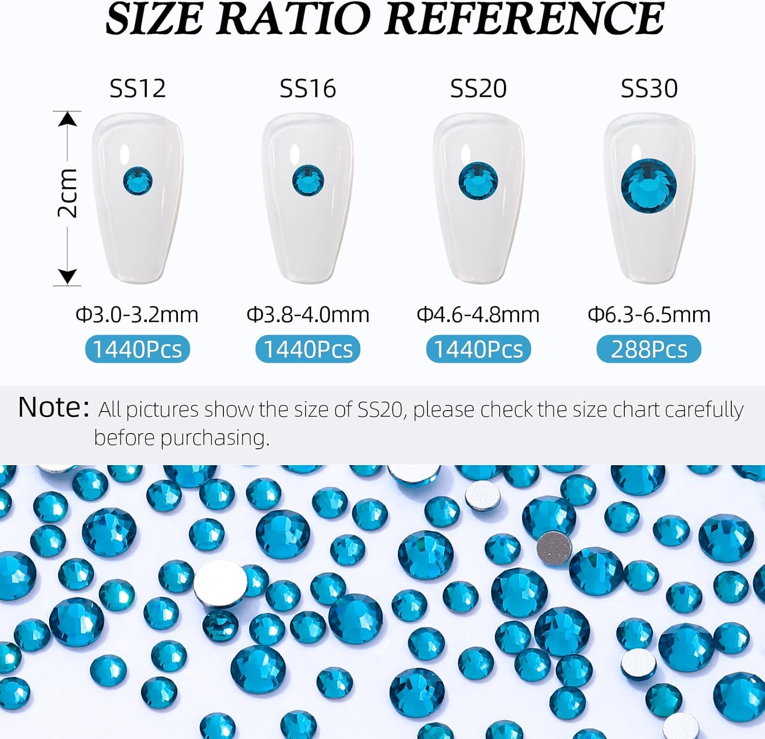 Malachite Blue Flatback Rhinestones, Glass Rhinestones for Nail Art and Craft, Glue Fix, Loose Crystal Gemstones(Malachite Blue, SS16, 1440pcs, 3.8-4.0mm)