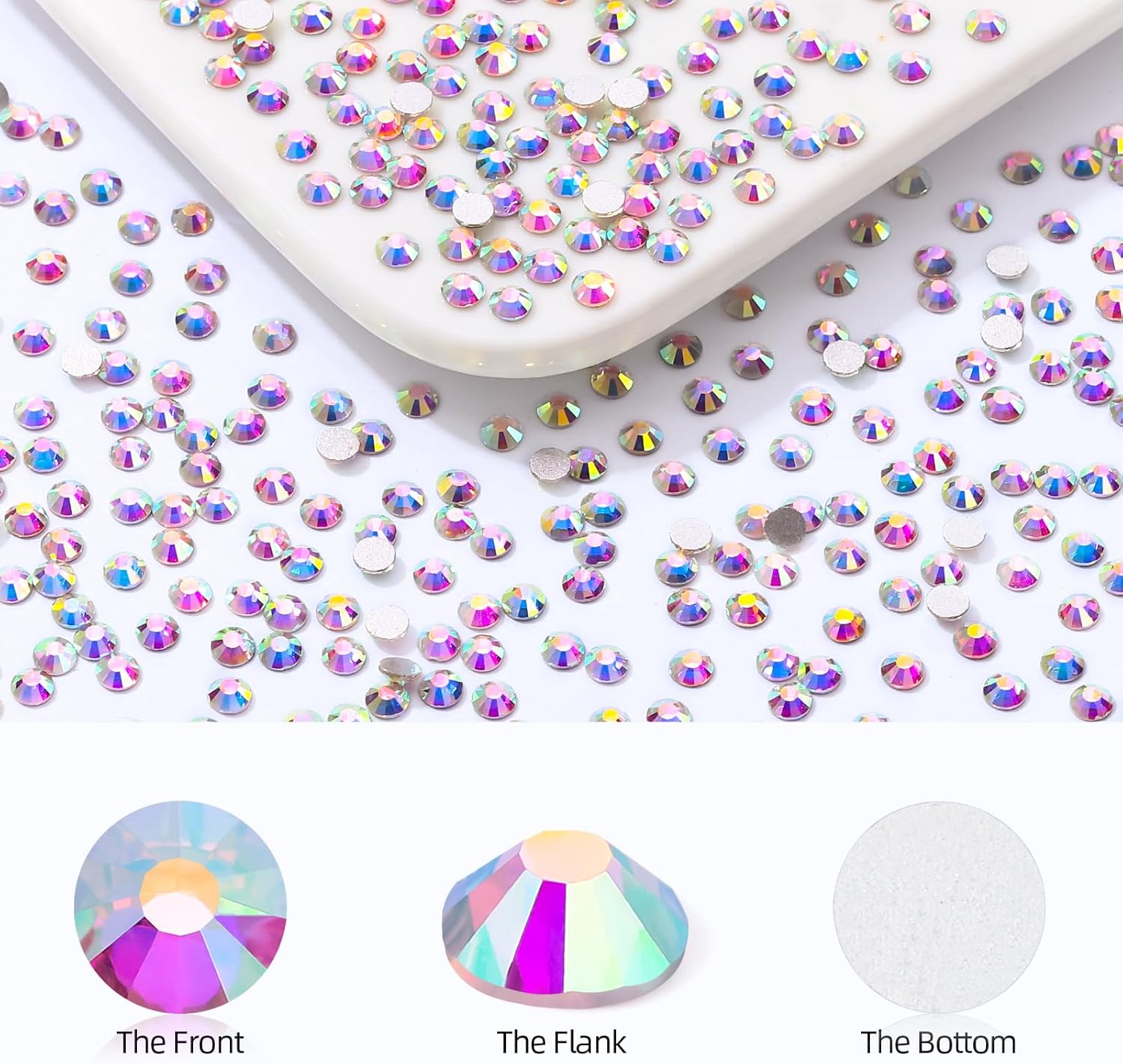 Crystal AB Flatback Rhinestones, Glass Rhinestones for Nail Art and Craft, Glue Fix, Loose Crystal Gemstones(Crystal AB, SS3, 1440pcs, 1.3-1.4mm)