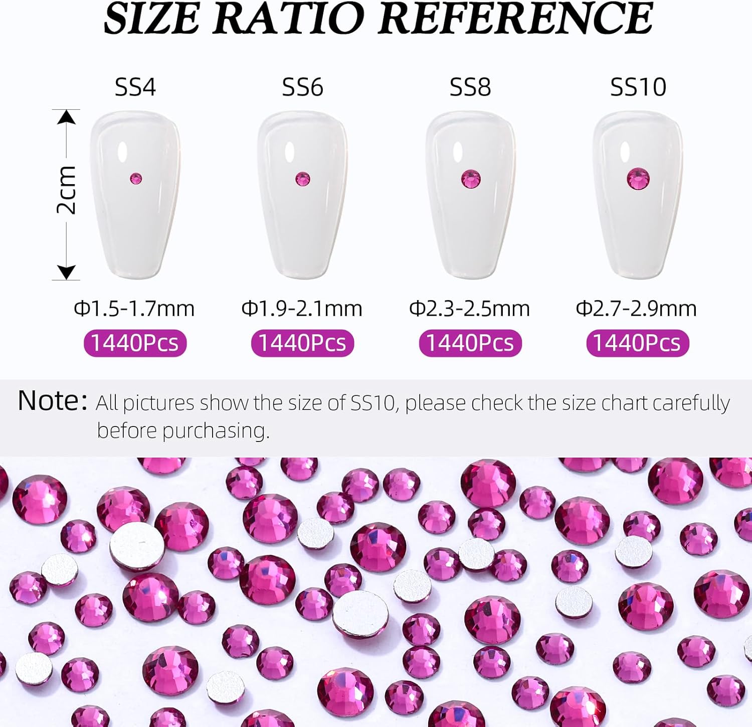 - Product Packaging: Bags packaging SS4 1.5~1.7 MM - 1440 Pcs fuchsia flatback rhinestones
