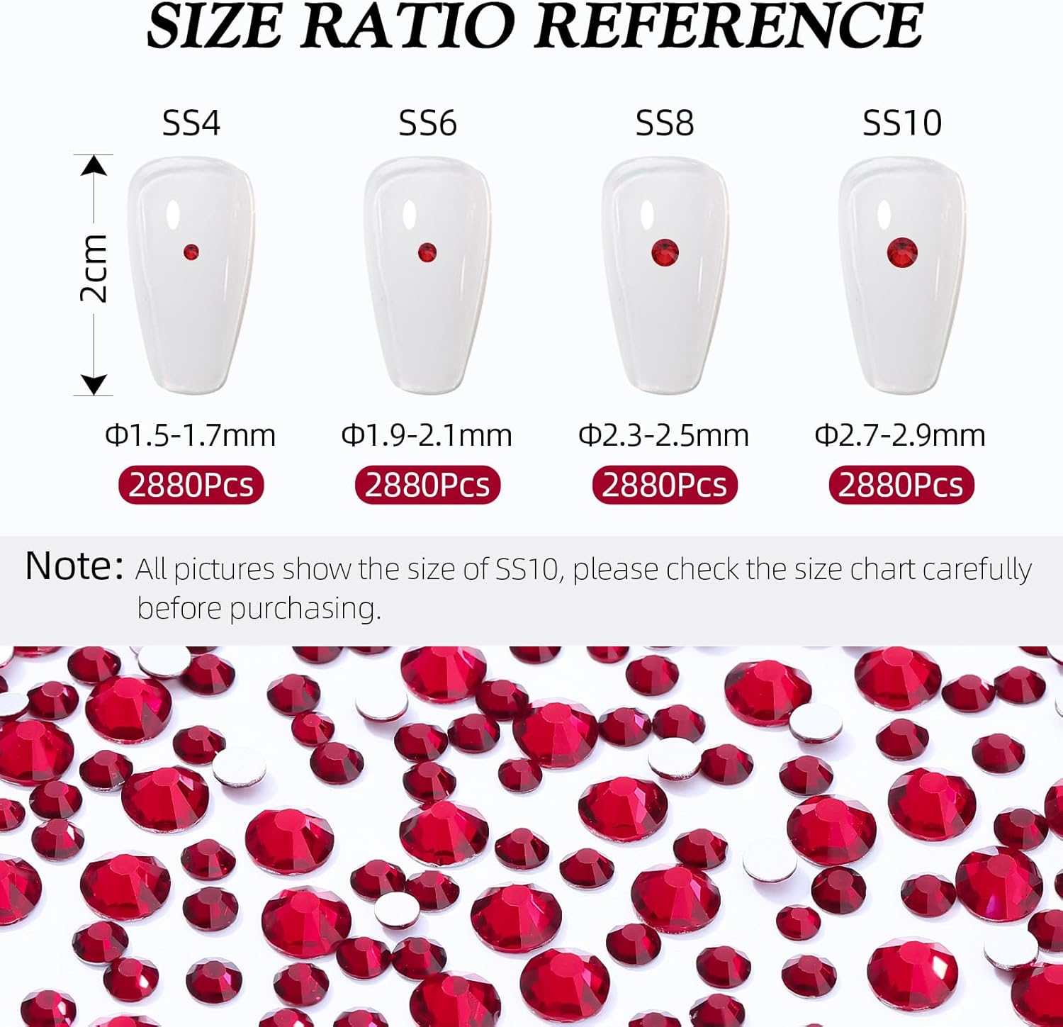 Siam Flatback Rhinestones, Glass Rhinestones for Nail Art and Craft, Glue Fix, Loose Crystal Gemstones(Siam, SS8, 2880pcs, 2.3-2.5mm)