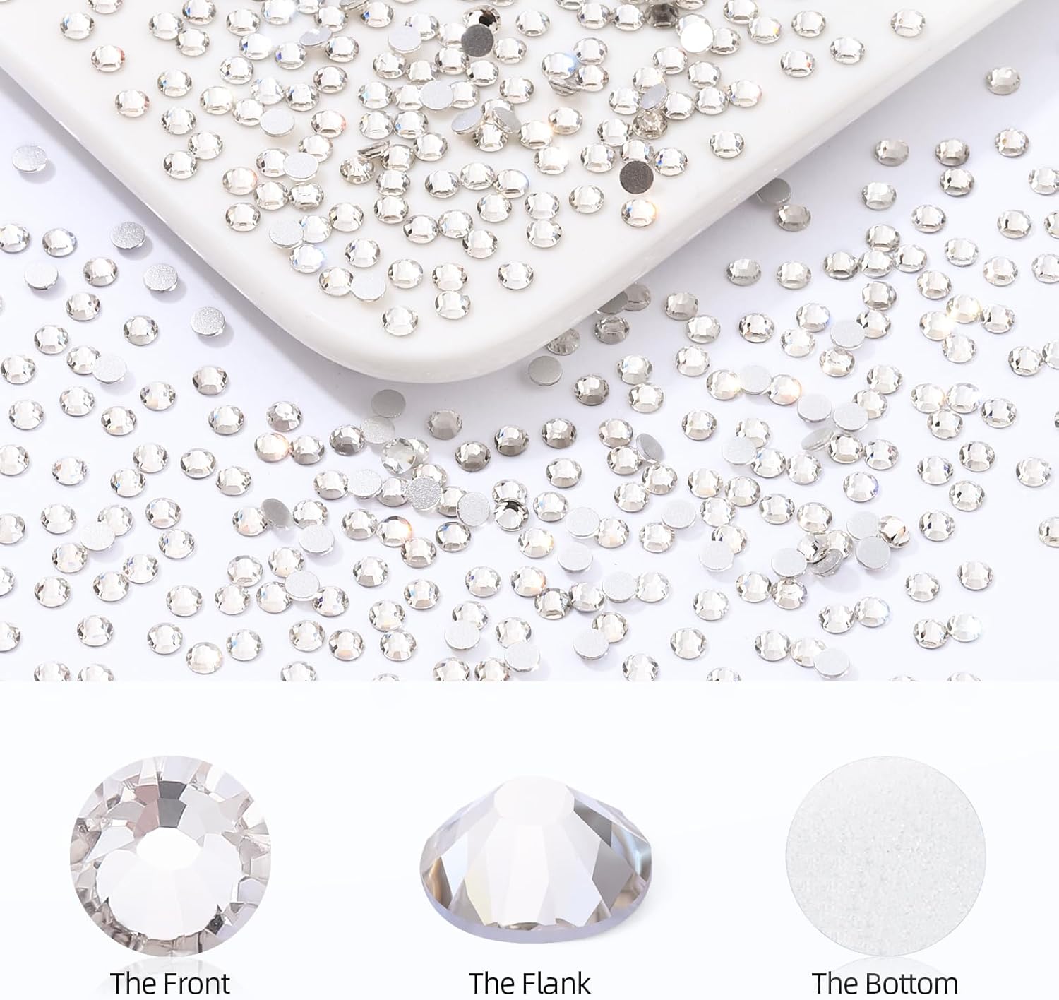 Crystal Clear Flatback Rhinestones, Glass Rhinestones for Nail Art and Craft, Glue Fix, Loose Crystal Gemstones(Crystal, SS8, 2880pcs, 2.3-2.5mm)