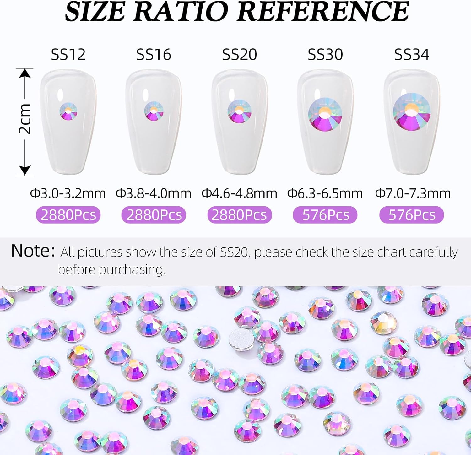 - Product Packaging: Bags packaging SS34 7.1~7.3 MM - 576 Pcs crystal AB flatback rhinestones.