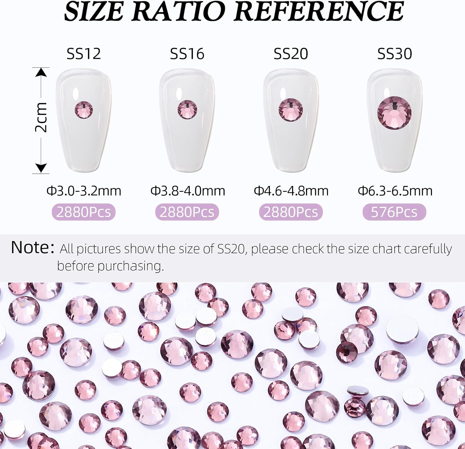 Light Amethyst Flatback Rhinestones, Glass Rhinestones for Nail Art and Craft, Glue Fix, Loose Crystal Gemstones(Lt.Amethyst, SS12, 2880pcs, 2.9-3.0mm)