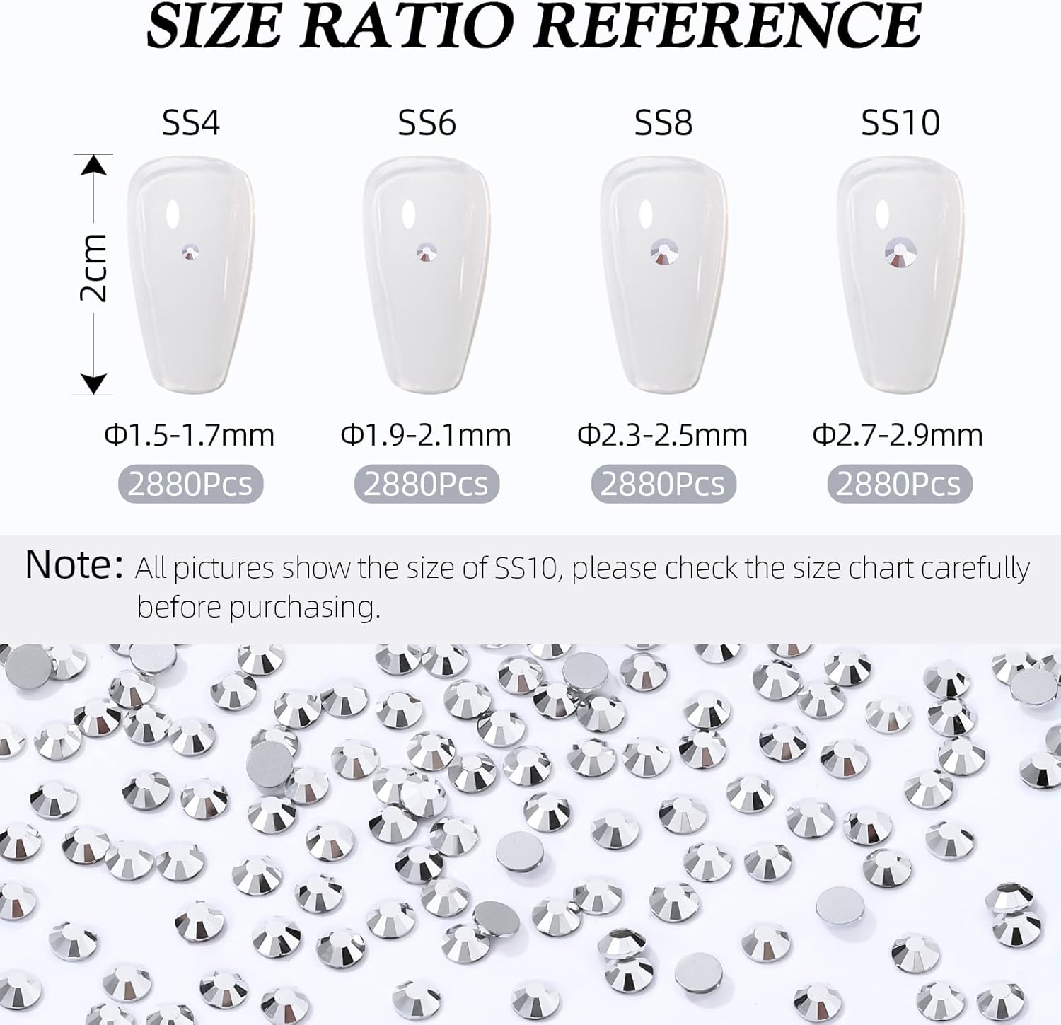 Silver Flatback Rhinestones, Glass Rhinestones for Nail Art and Craft, Glue Fix, Loose Crystal Gemstones(Silver, SS4, 2880pcs, 1.5-1.7mm)