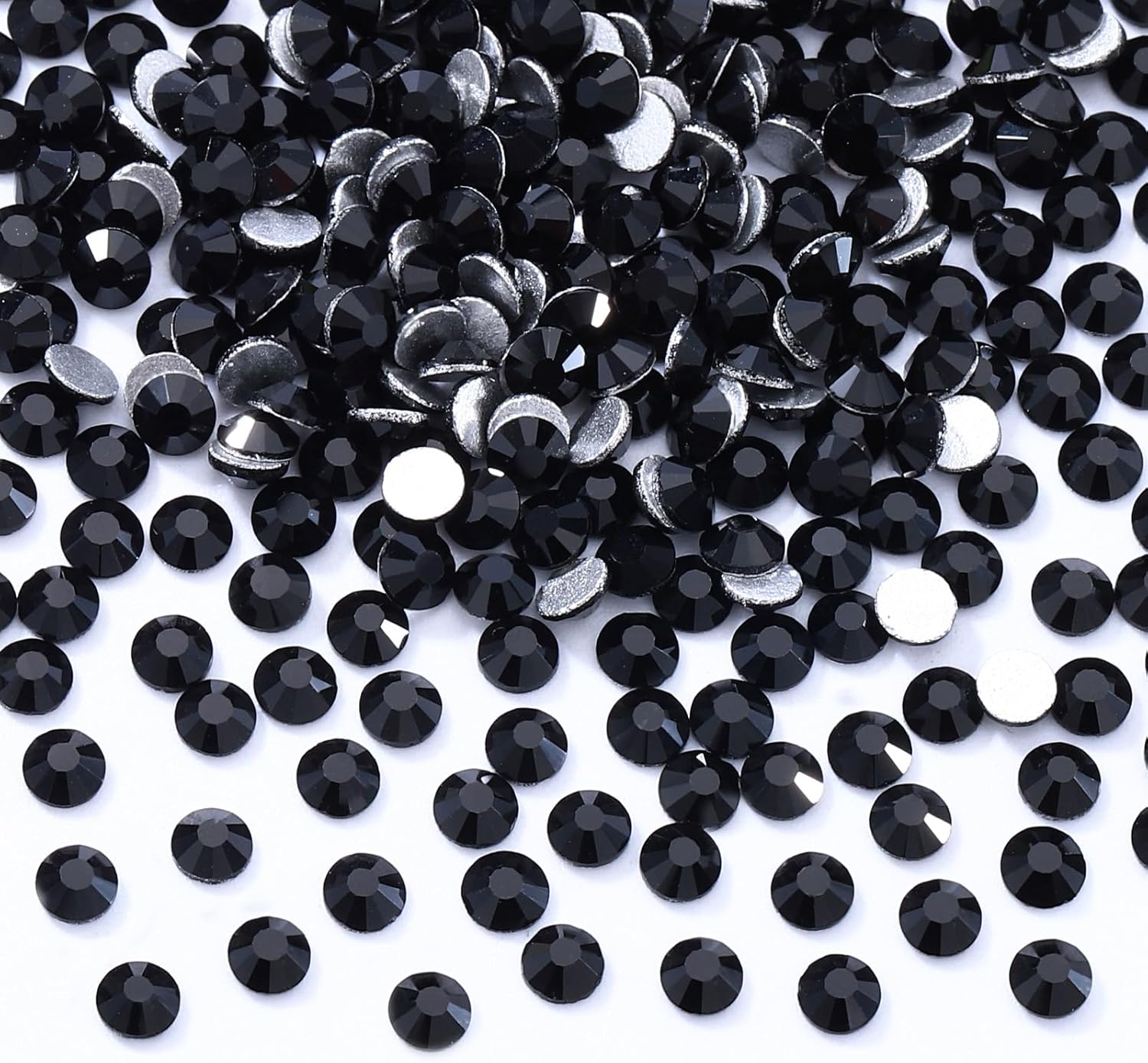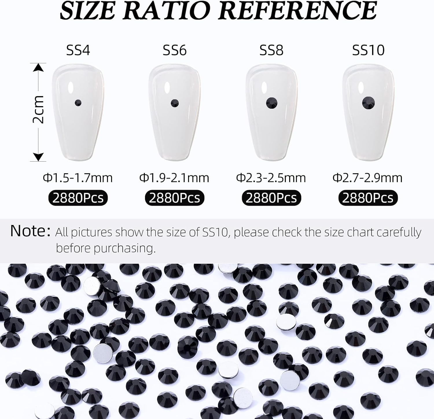 Black Flatback Rhinestones, Glass Rhinestones for Nail Art and Craft, Glue Fix, Loose Crystal Gemstones(Black, SS8, 2880pcs, 2.3-2.5mm)