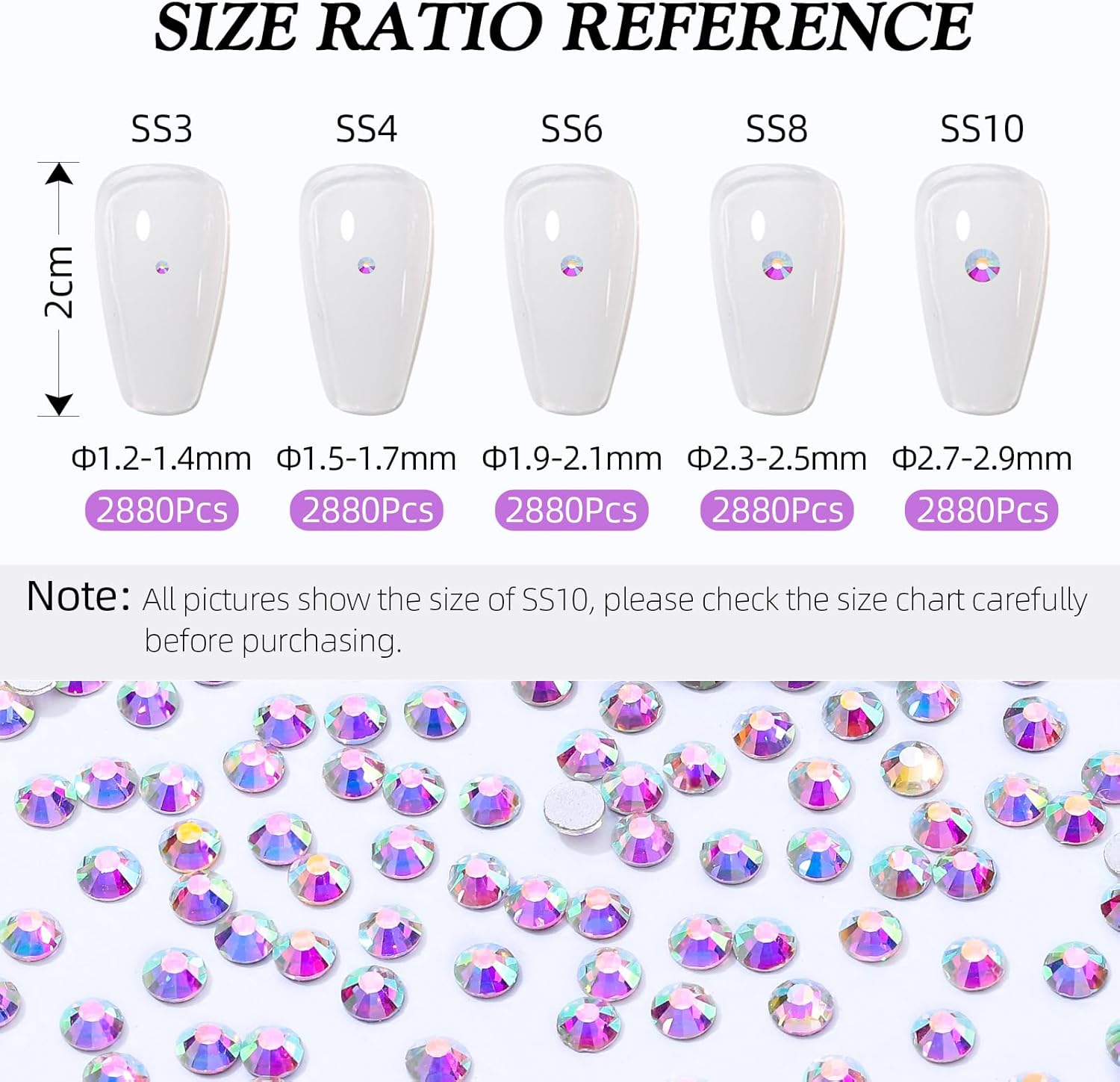 Crystal AB Flatback Rhinestones, Glass Rhinestones for Nail Art and Craft, Glue Fix, Loose Crystal Gemstones(Crystal AB, SS6, 2880pcs, 1.9-2.0mm)