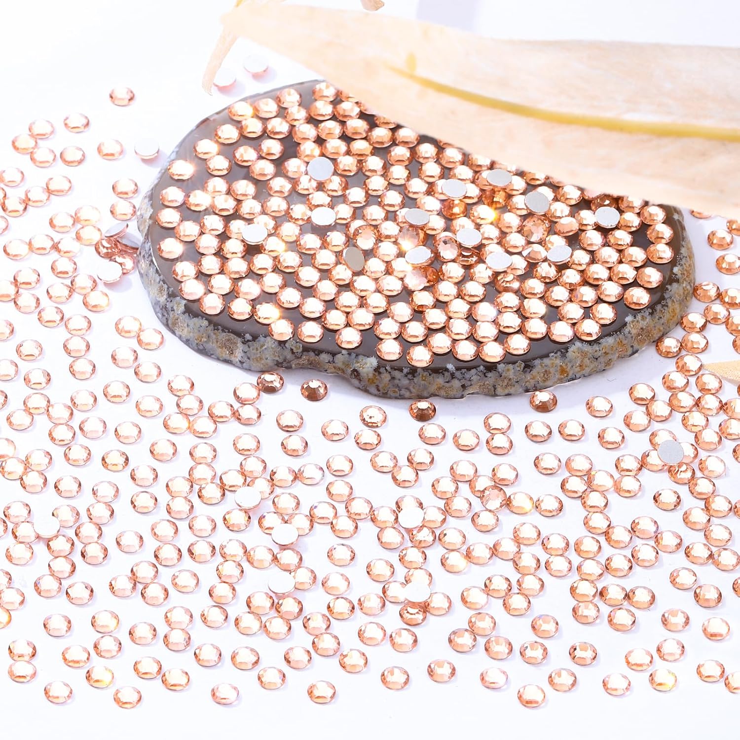 - Product Packaging: Bags packaging SS8 2.3~2.5 MM - 2880 Pcs champagne flatback rhinestones.