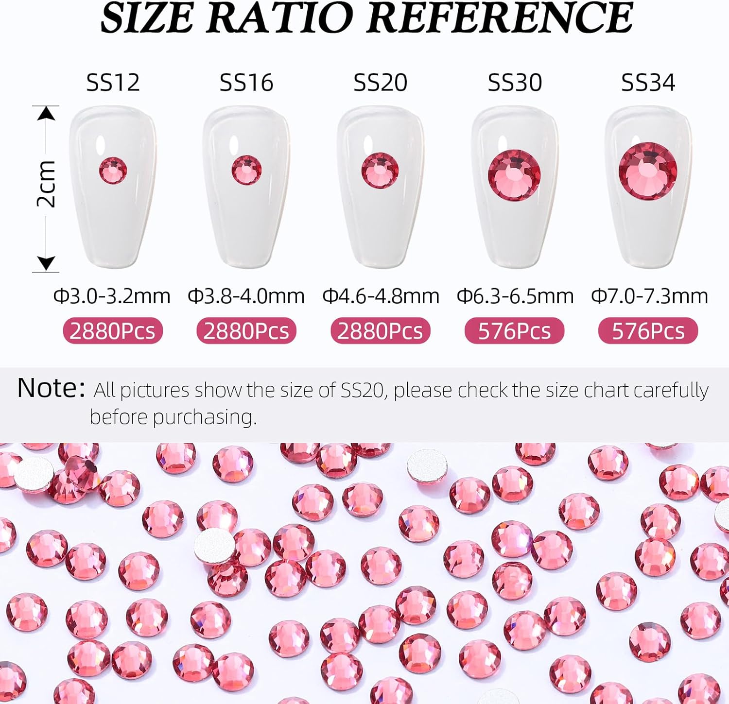 Rose Flatback Rhinestones, Glass Rhinestones for Nail Art and Craft, Glue Fix, Loose Crystal Gemstones(Rose, SS34, 576pcs, 7.1-7.3mm)