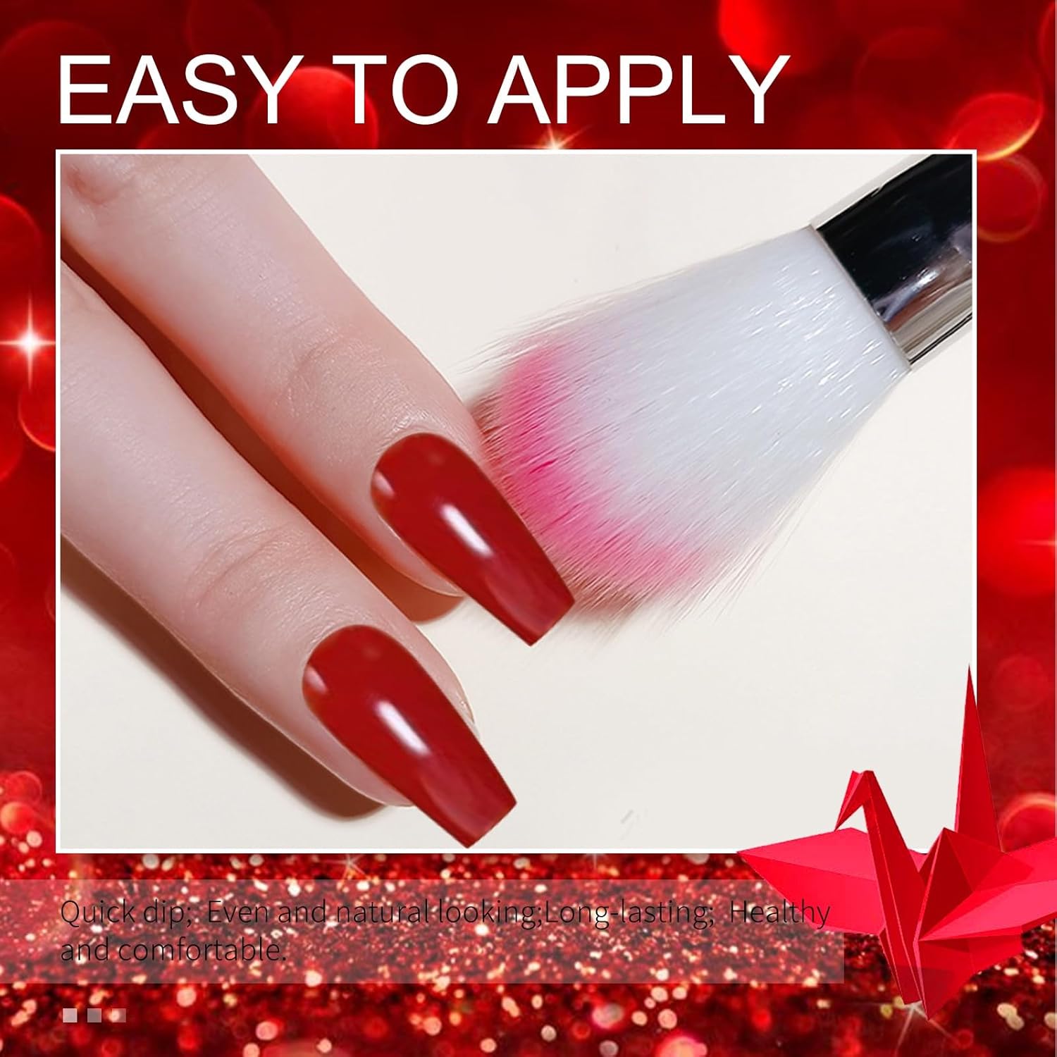 - 🎉Key Points: 1. Durability ensured with proper dip nail operation steps: 2. Achieve uniformity with even dip powder application. 3. Note that the vibrant colors displayed on nail tips in our imagery have been achieved with two coatings/layers of dip powder on false nails, which may vary slightly on actual nails. 4. Removal is a breeze with a nail polish remover pad. Should you require assistance with your dip nails liquid set, don't hesitate to reach out for step-by-step guidance and support.