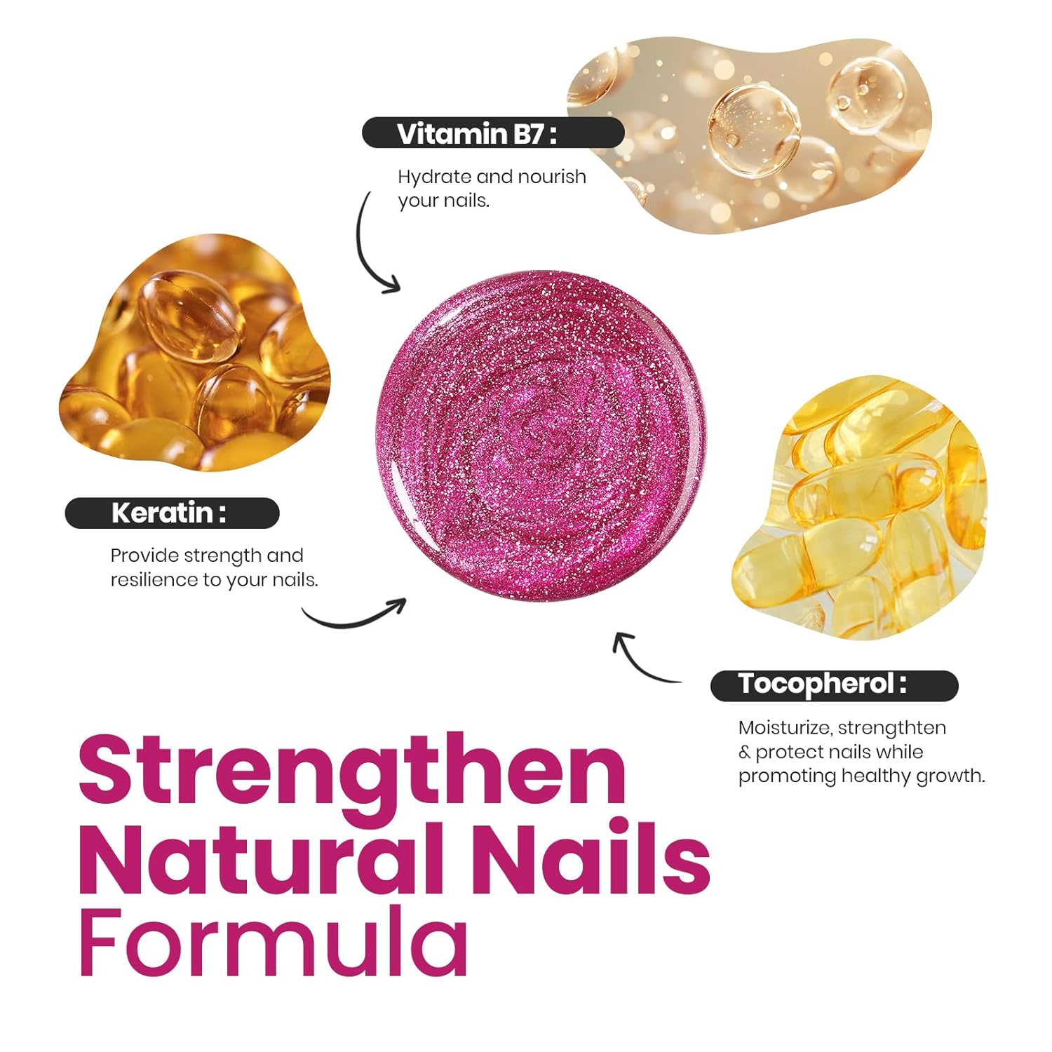 - Nail Care Ingredients: This healthy nail polish formula contains at least 3 ingredients to protect nails, which can strengthen and thicken nails and accelerate nail repair so that your nails have a beautiful appearance and also make your nails healthier!