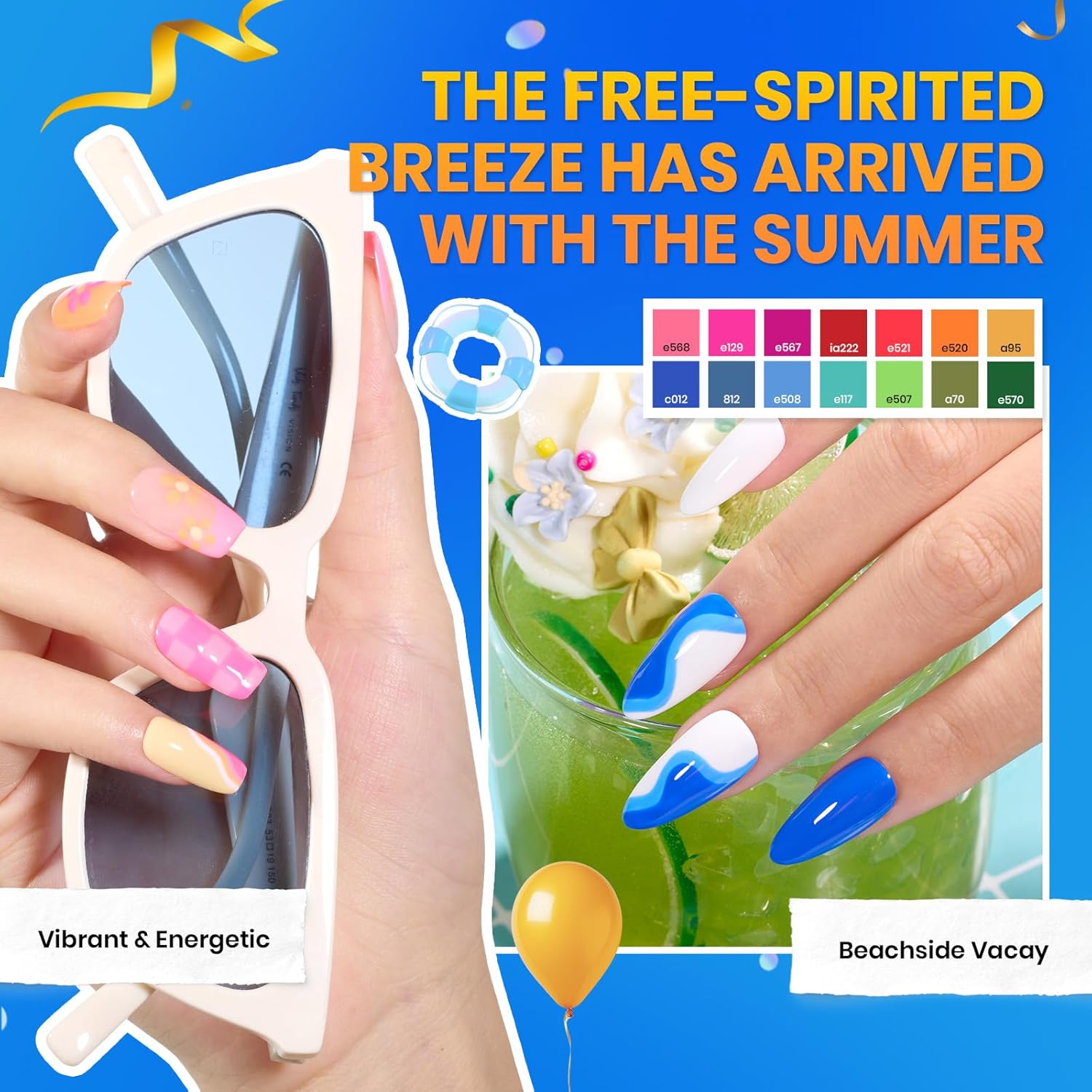 - ă60 Colors Gel Nail Polish SetăThe beetles gel nail polish set contains 60 nail colors carefully selected by us to cover the four seasons, let you can find suitable and beautiful colors in different occasions of the four seasons. The gel nail polish set includes 5ml*60 color gel nail polish, 7.5ml*2 base coat, 7.5ml*2 glossy top coat, 7.5ml*1 matte top coat,1*nail file, 1*nail buffer, 1*nail clipper ,1*cuticle stick and 1*instruction manual
