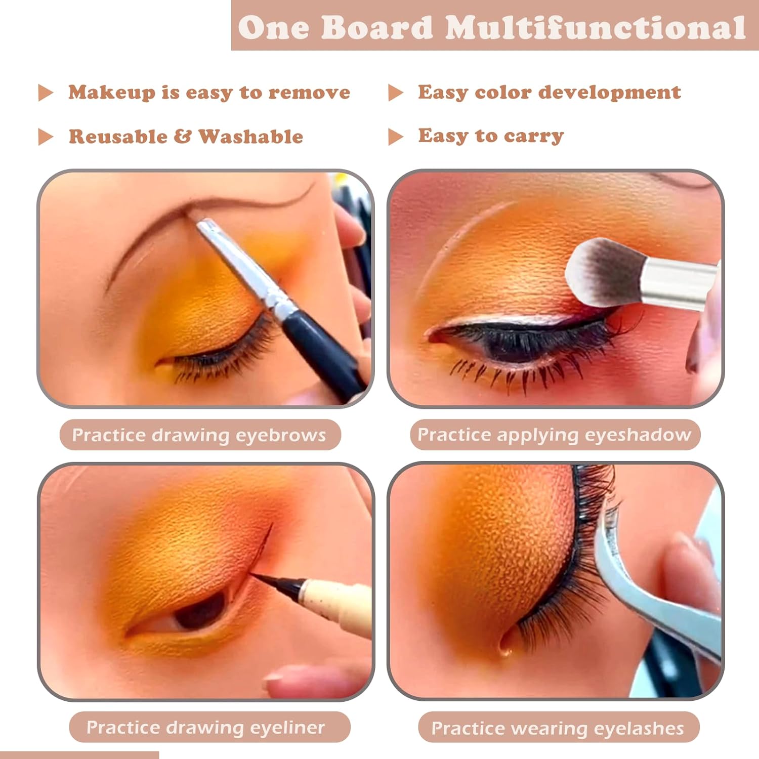- đăMulti-function Makeup BoardăRealize the eyelash display function, eyebrow exercise function, face painting practice function, makeup practice function. Suitable for cosmetology school, makeup artists and those who want to learn makeup.