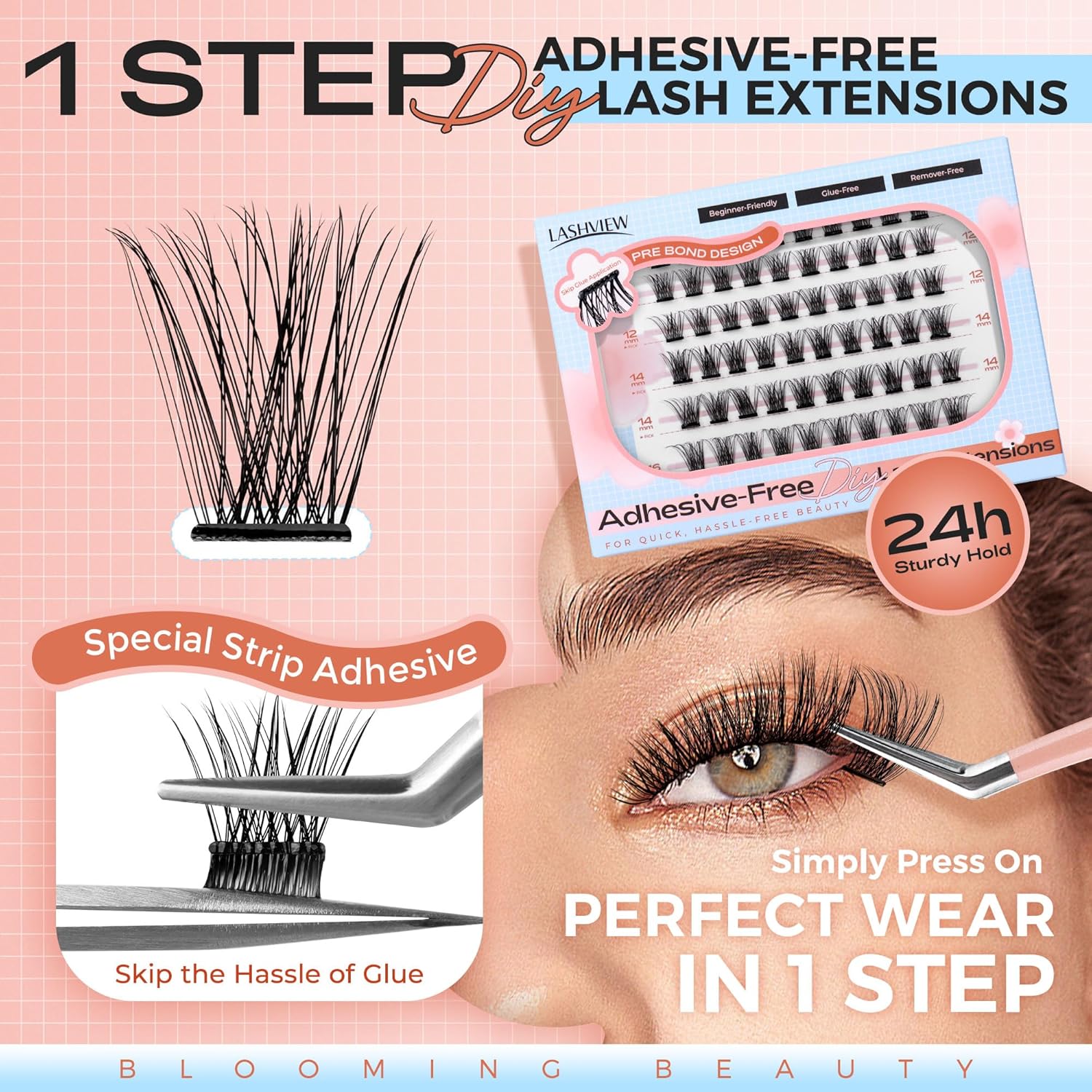 LASHVIEW Self AdhesiveLash Clusters DIY Lash Extensions 72 Clusters Lashes C D Curl LASH Single Lashes Eyelash No Glue Needed Clusters Extensions