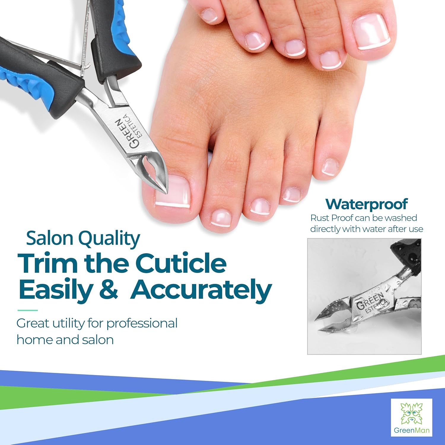 - [TOP NOTCH QUALITY FOR NAIL CARE] This Professional Cuticle Cutter with Non -Slip Grip handle is crafted from Premium Quality Surgical-Grade Stainless Steel makes it extremely Durable and Long lasting. Measurements: The cuticle nipper is 4.5β long, 3" wide and the Cutting blade is 0.25'' long