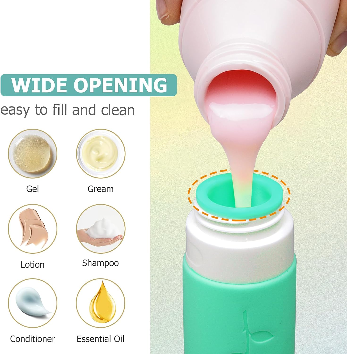 - 【Easy to Fill and Clean】: Travel toiletry containers with wide mouth design make them easy for you to fill items. Travel containers can be easily washed with foaming water.