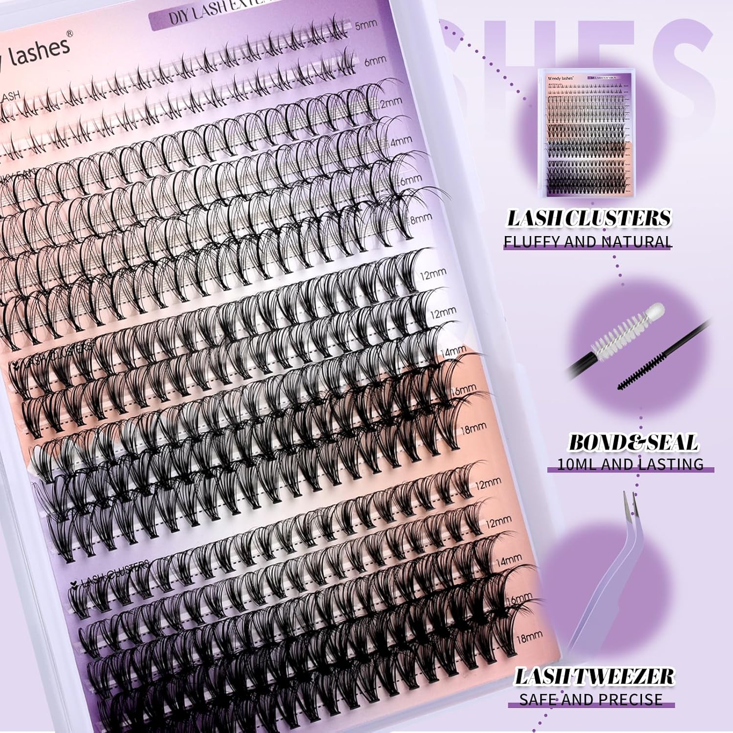 • DIFFERENT STYLES OF COMBO TRAYS: Our lash cluster kits come with four different styles of lashes, whether you want natural or thick, fox eyes or doll eyes, with a mix of lengths ranging from 12-18mm to meet any of your needs.