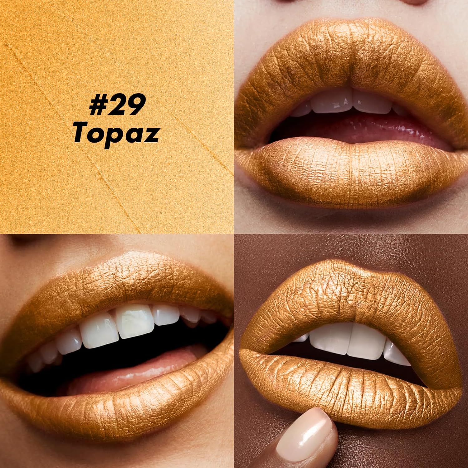 FOCALLURE Ultra Chic Metallic Lipstick,Rich Vitamin E Lip Crayon,Lightweight Shinning Color without Drying or Fading,Long Lasting Lips Makeup,#29 Topaz