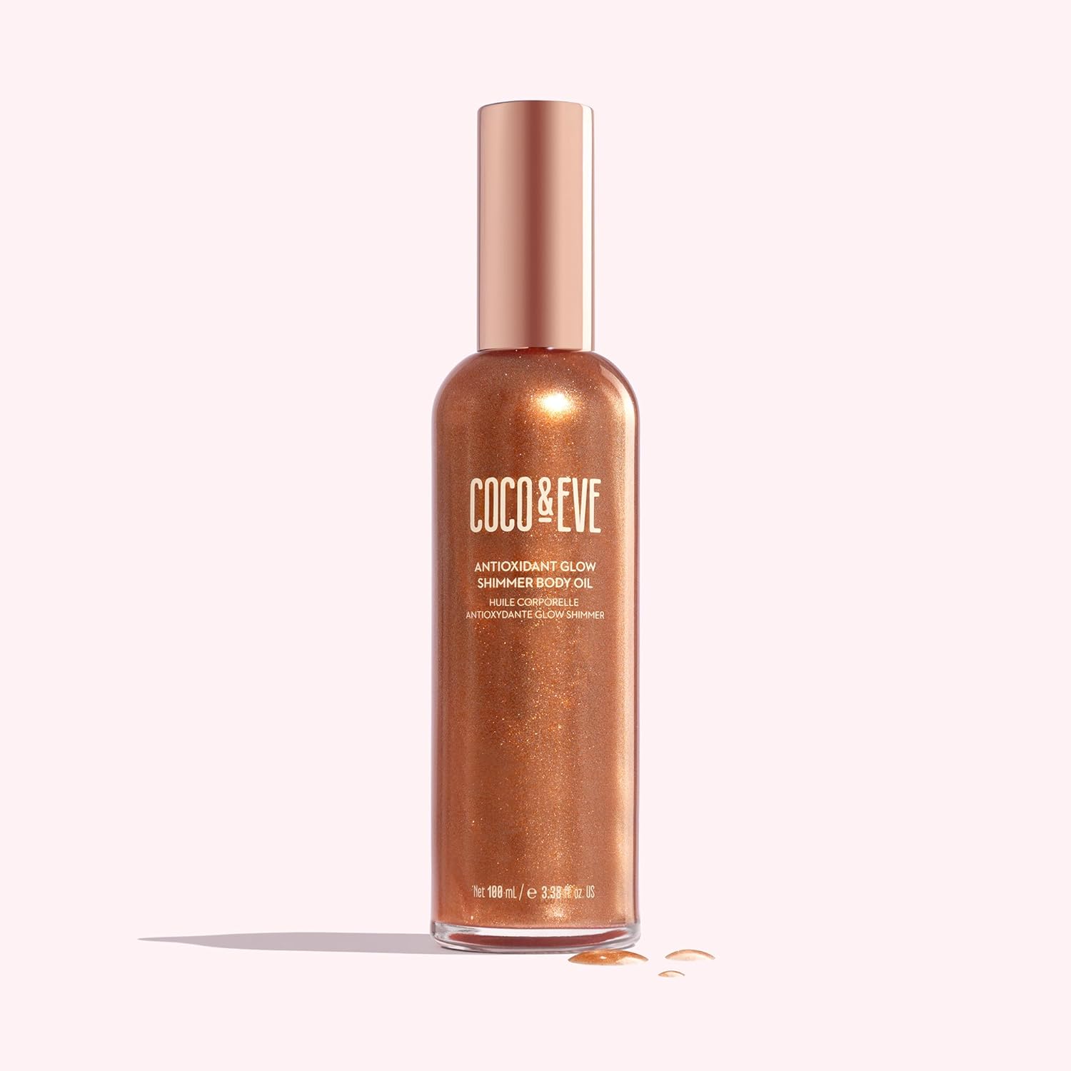 Coco & Eve Antioxidant Glow Shimmer Body Oil - Lightweight Skin Illuminator with Pearlescent Minerals, Natural Glitter, Antioxidants for Shimmering, Moisturizing and Healthy Glow (3.38 Fl Oz)