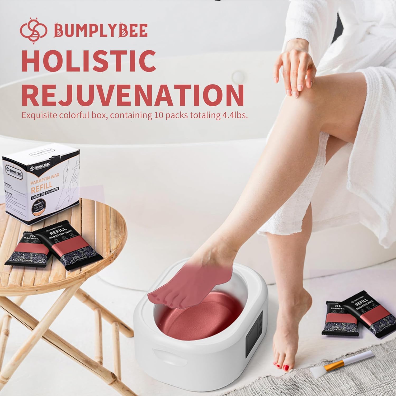 - Skin Care & Mild Properties - Designed for ease and suitable for sensitive skin, BUMPLYBEE parafin wax enhances skin texture and visage, crafted for simplicity and compatible with delicate skin; Ideal for paraffin wax for hands, provides deep hydration, addressing dryness and roughness for lasting softness; Dive into a hydrating bath that leaves your skin soft and radiant; Each session with our paraffin wax block is crafted to gently and effectively enhance skin care routines