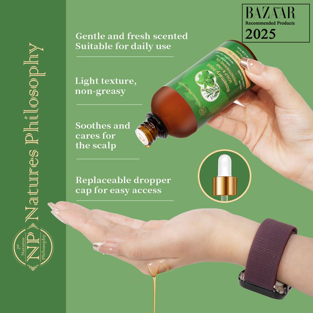 NP NATURES PHILOSOPHY Rosemary Oil for Hair Growth, Hair Growth Oil 3.38 fl oz, Anti-Hair Loss, Quickly Absorbed & Non-Greasy, Aussie Organic Hair Serum for All Hair Types, for Men and Women