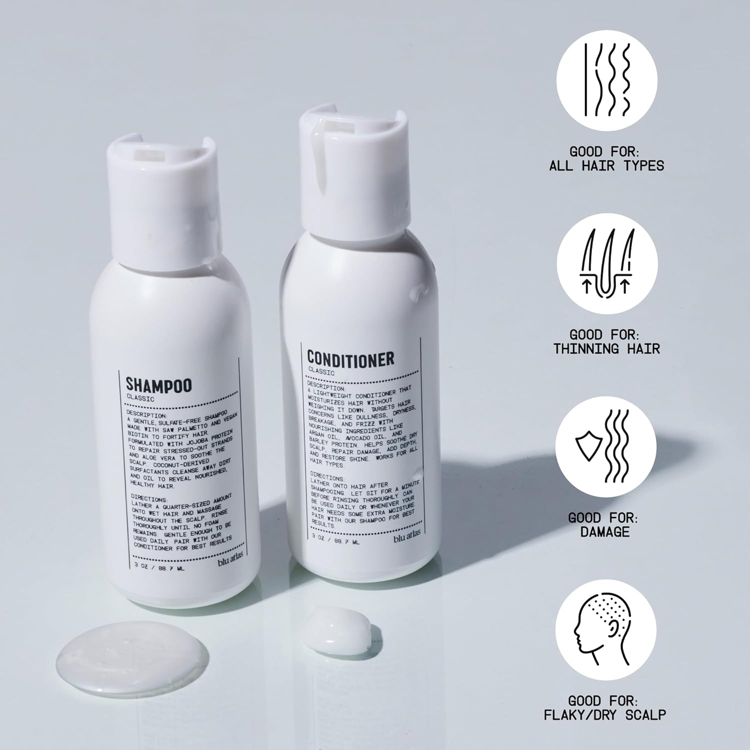 - Natural, Botanical Formula for Healthy Hair- Crafted with 96% naturally derived ingredients like jojoba oil, aloe vera, and saw palmetto, this travel set gently cleanses and conditions while supporting scalp health and hair strength.