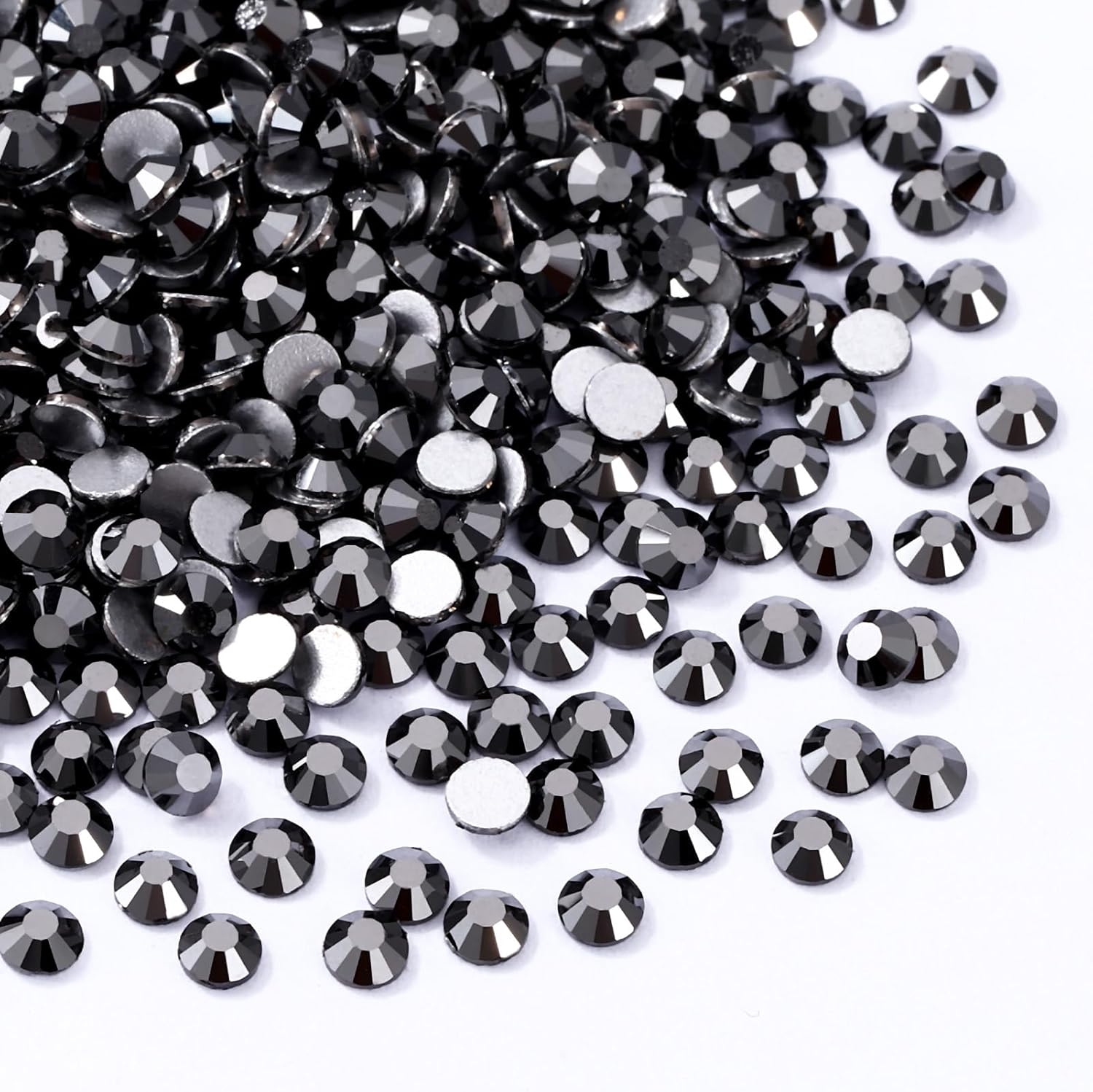 Black Hematite Flatback Rhinestones, Glass Rhinestones for Nail Art and Craft, Glue Fix, Loose Crystal Gemstones(Black Hematite, SS4, 1440pcs, 1.5-1.7mm)